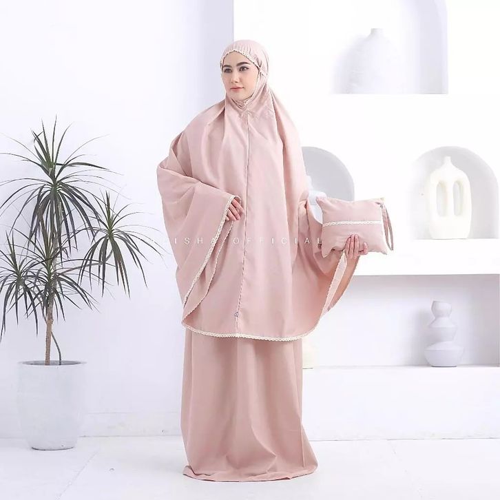 Mukena Dewasa Mukena Katun Polos Renda Rajut Alana Series Premium Traveling Free Pouch By Kalishaofficial