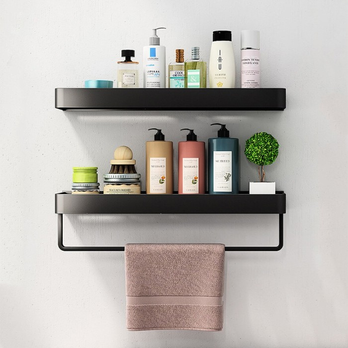 HITAM RAK KAMAR MANDI RAK DINDING TEMPEL ORGANIZER SHOWER SUDUT HANDUK - 30CM