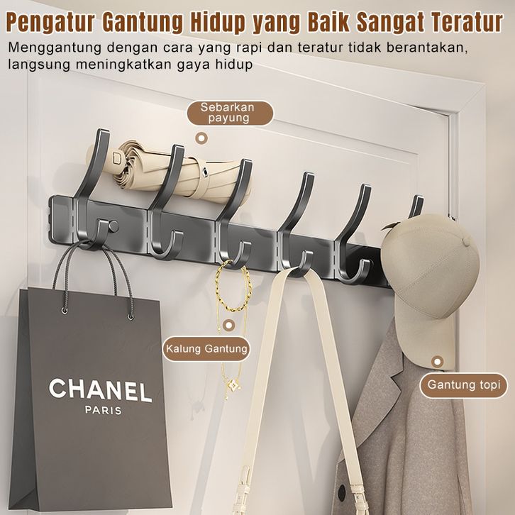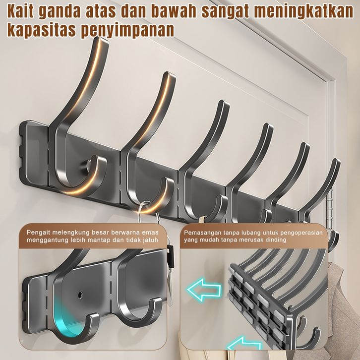 Gantungan Baju Pintu Bor Bebas Aluminium Tebal Pakaian Pintu Kait Dinding Gantungan Penyimpanan Kamar Mandi Toilet Rak G
