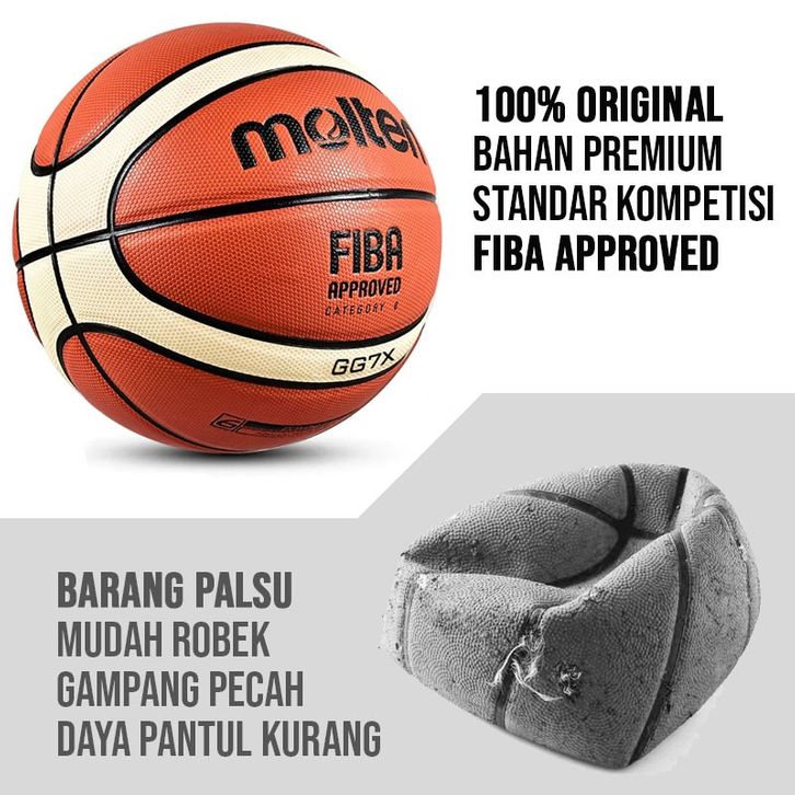 BOLA BASKET MOLTEN GG7X SIZE 7 EXTRA POMPA PENTIL JARING COCOK UNTUK LATIHAN DAN TURNAMEN