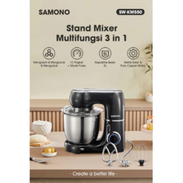 Samono Stand Mixer SW-KM550 Penganduk Adonan Kue 5 Liter Mixer Kue Stand Mixer 5L - Mixer Samono