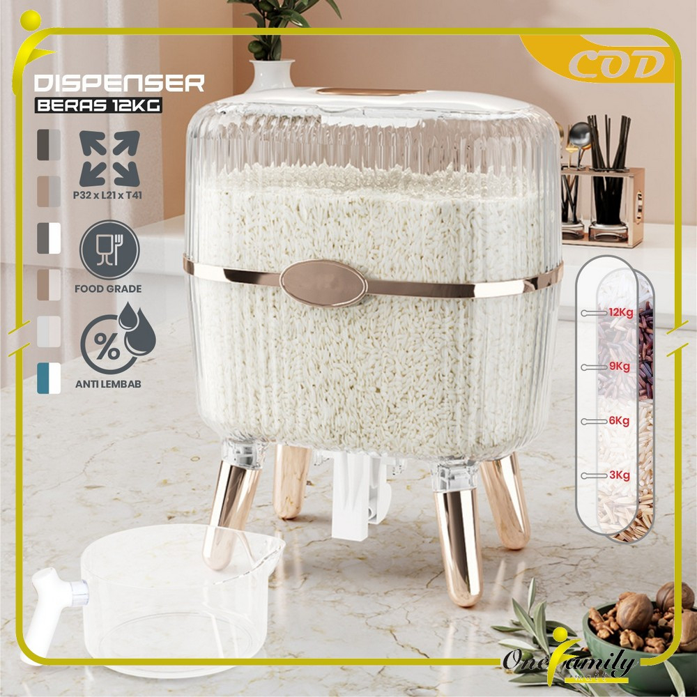 DISPENSER BERAS 12KG TEMPAT BERAS ESTETIK / KOTAK PENYIMPANAN MAKANAN KACANG TEPUNG