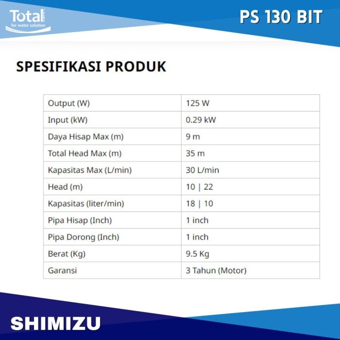 Pompa Air Shimizu Water Pump PS-130 BIT
