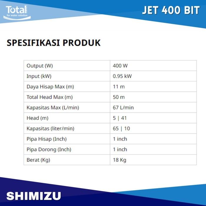 Pompa Air Shimizu Water Pump JET-400 BIT