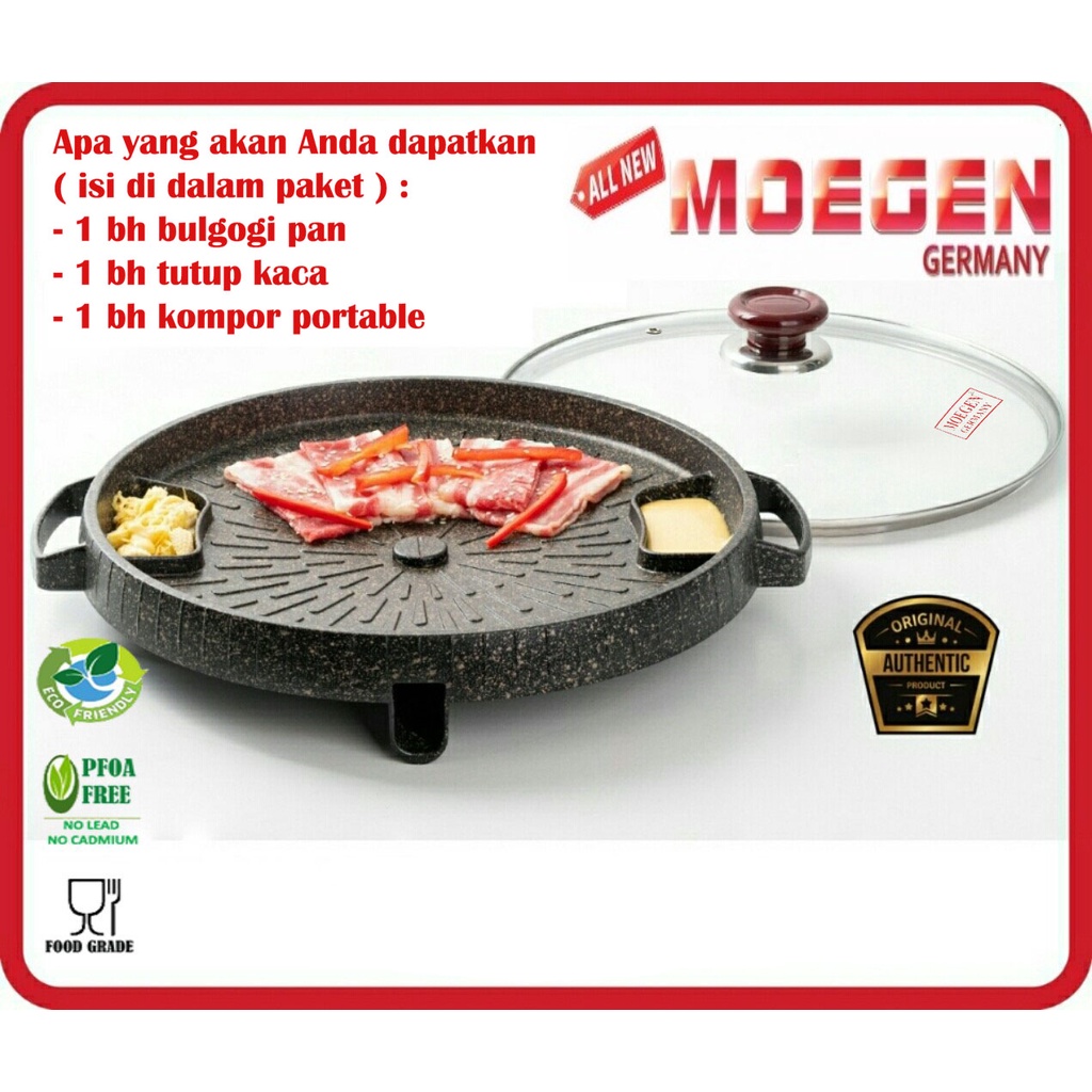 ORIGINAL MOEGEN Germany bulgogi pan all new 32cm grill panggangan bbq + tutup kaca + kompor portable