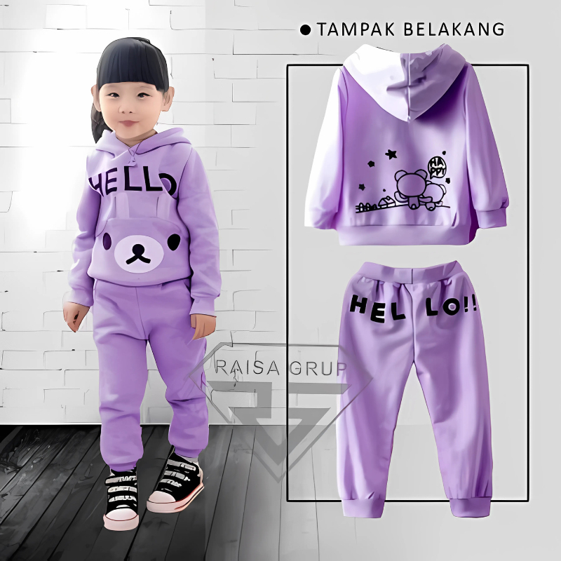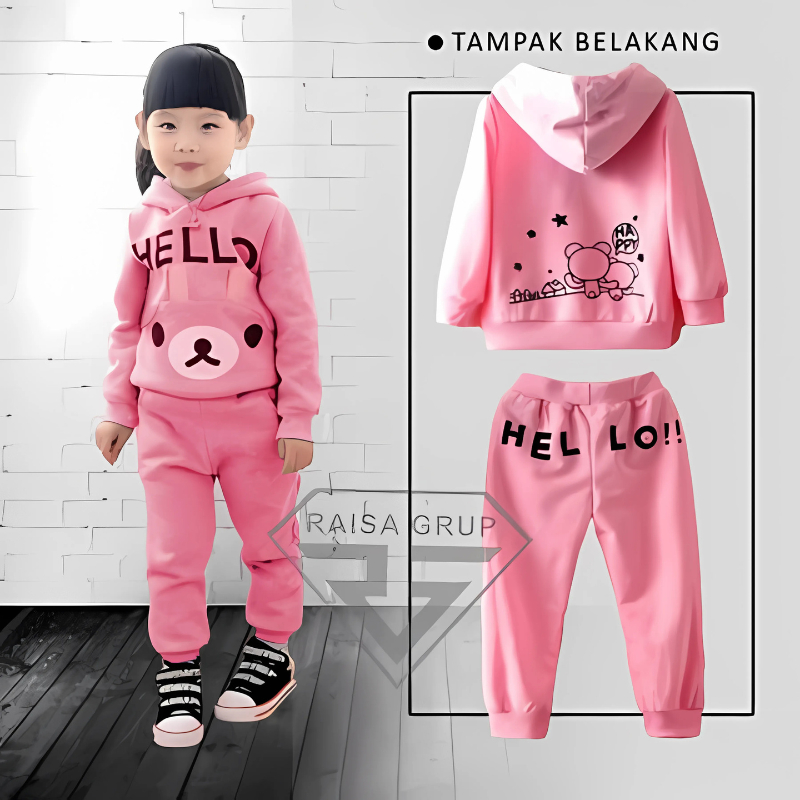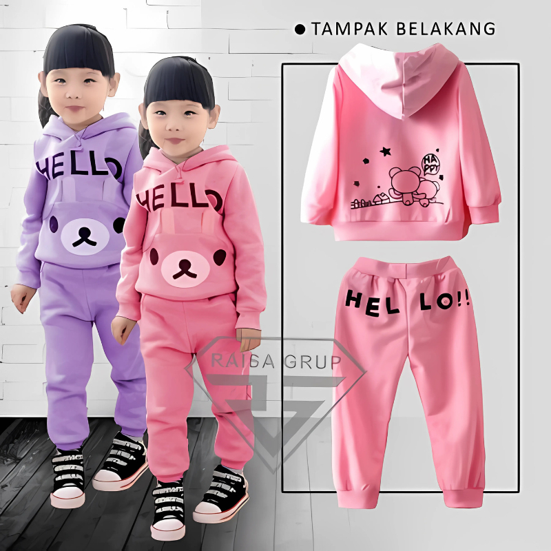 SETELAN ANAK PEREMPUAN HODIE HELLO 1-5 TAHUN BAJU ANAK PEREMPUAN MODEL TERBARU 2025