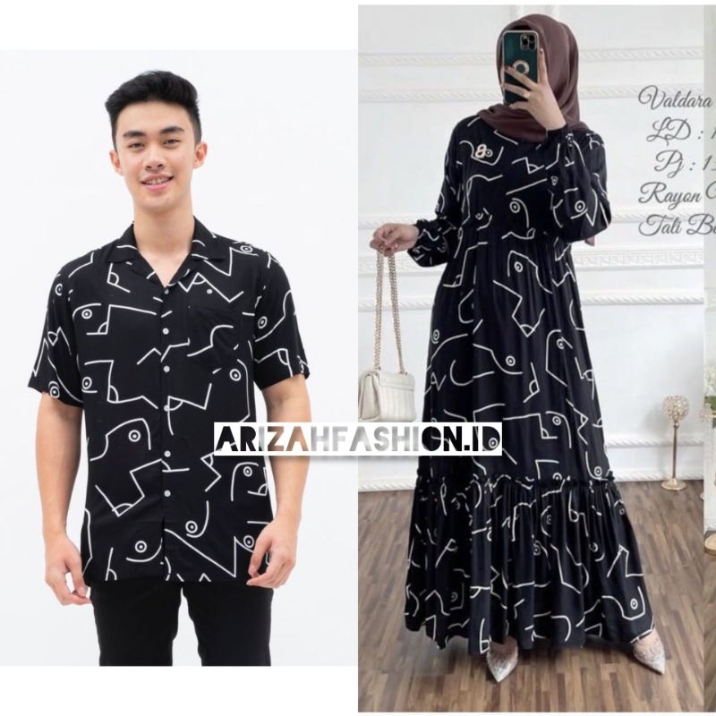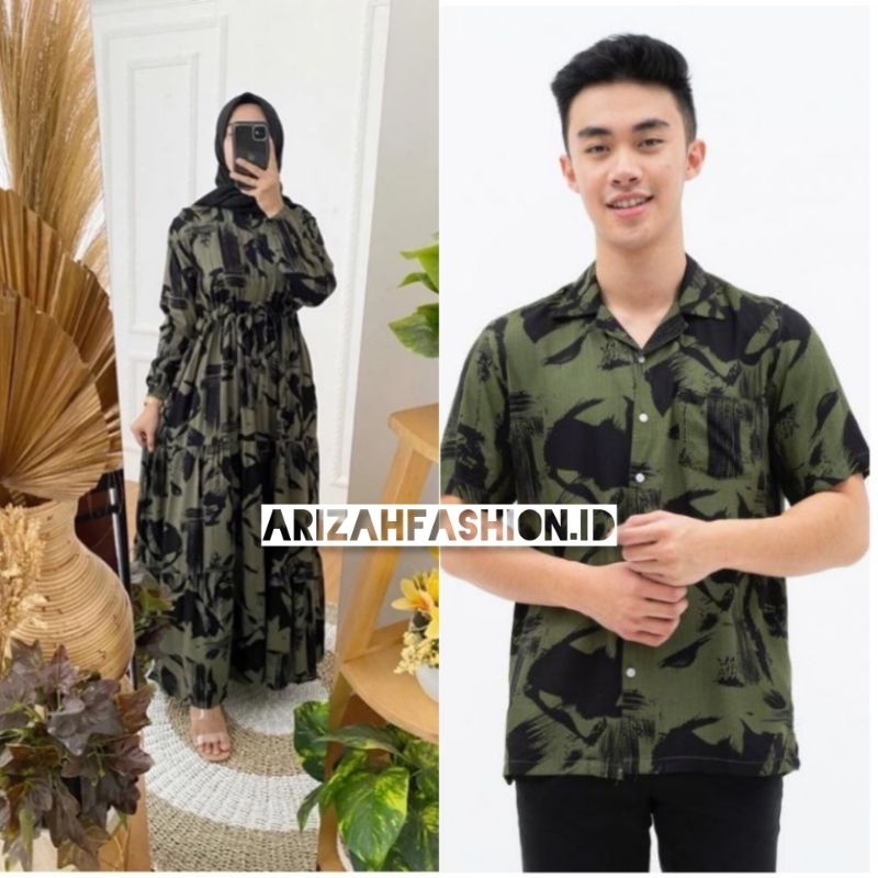 SETELAN GAMIS DAN KEMEJA RAYON MOTIF TERBARU | GAMIS COUPLE KEMEJA | Couple Baju Pasangan Gamis dan Kemeja Kekinian |Ser