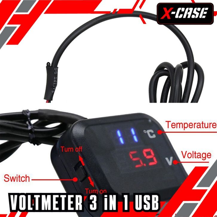 X-Case Voltmeter 3 In 1 Usb 12 Volt Waterproof Universal Semua Motor SL7182