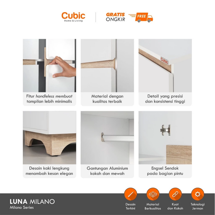[Mall] CUBIC LEMARI PAKAIAN MINIMALIS LUNA MILANO LP 3P ORIGINAL OFFICIAL STORE
