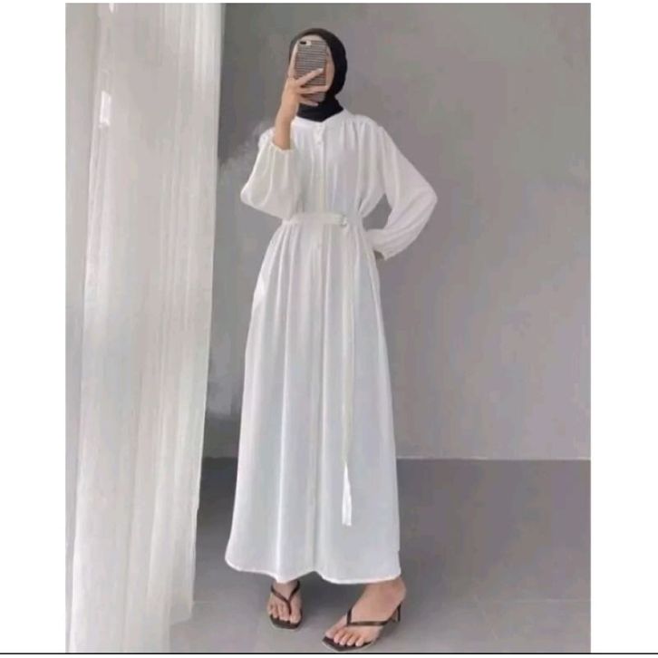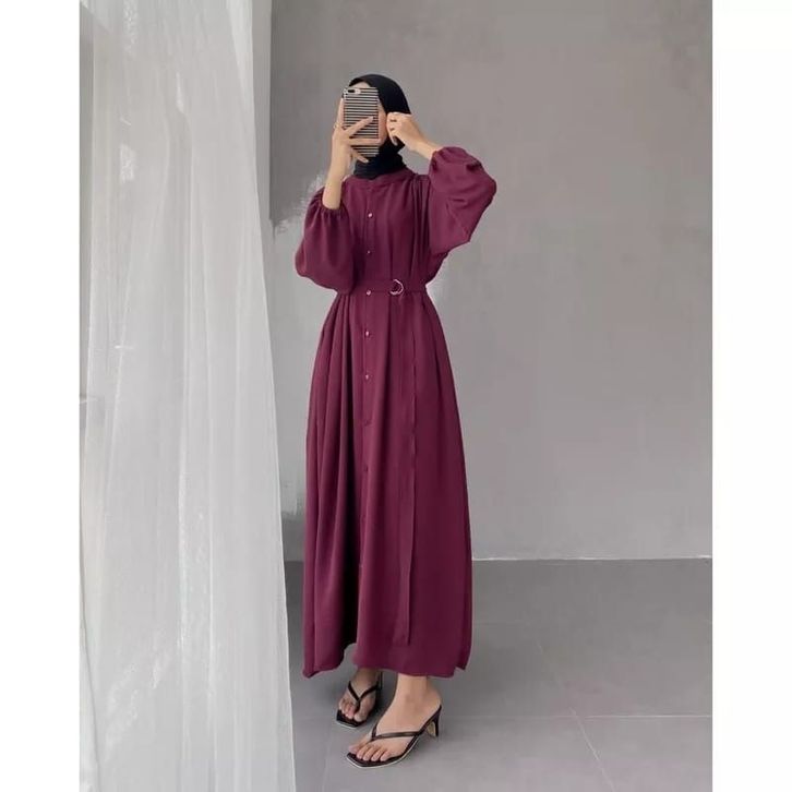 Dress Gamis Full Kancing Crinkle Airflow – Gamis Polos Muslimah LD 110 Busui Friendly Adem Nyaman