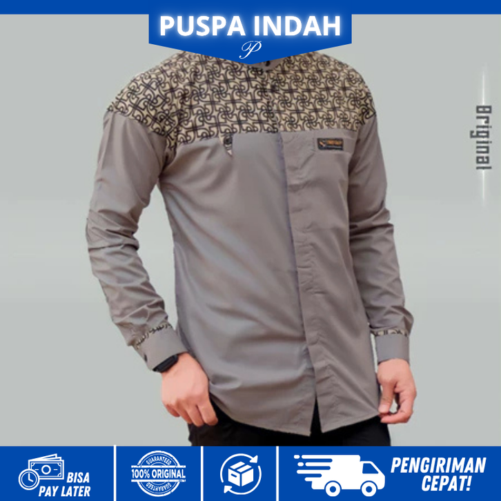 Baju Kemeja Koko Pria Lengan Panjang Kombinasi Batik Klasik Motif Bima S M L XL