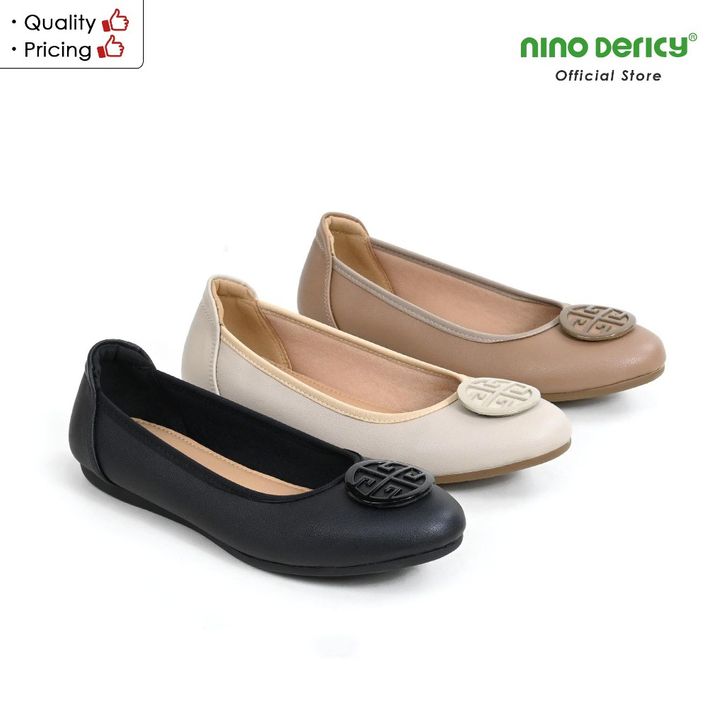 Flatshoes Wanita Sepatu Flat NINO DERICY Bahan Kulit Sintetis Size 37-42