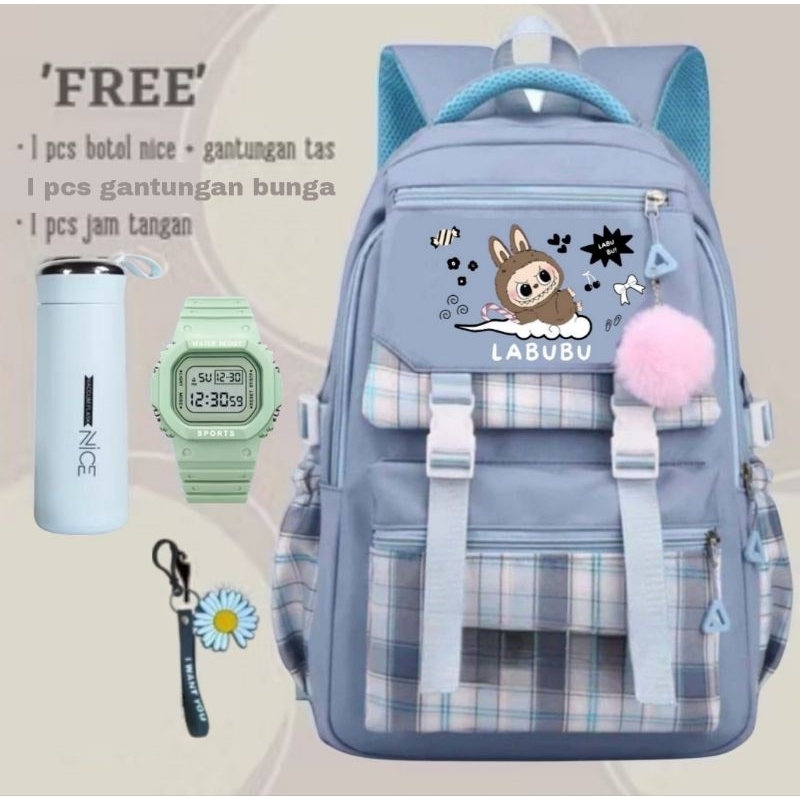 TAS SEKOLAH LABUBU MODEL TERBARU BANYAK BONUSNYA TAS SEKOLAH ANAK PEREMPUAN SD MOTIF LABUBU