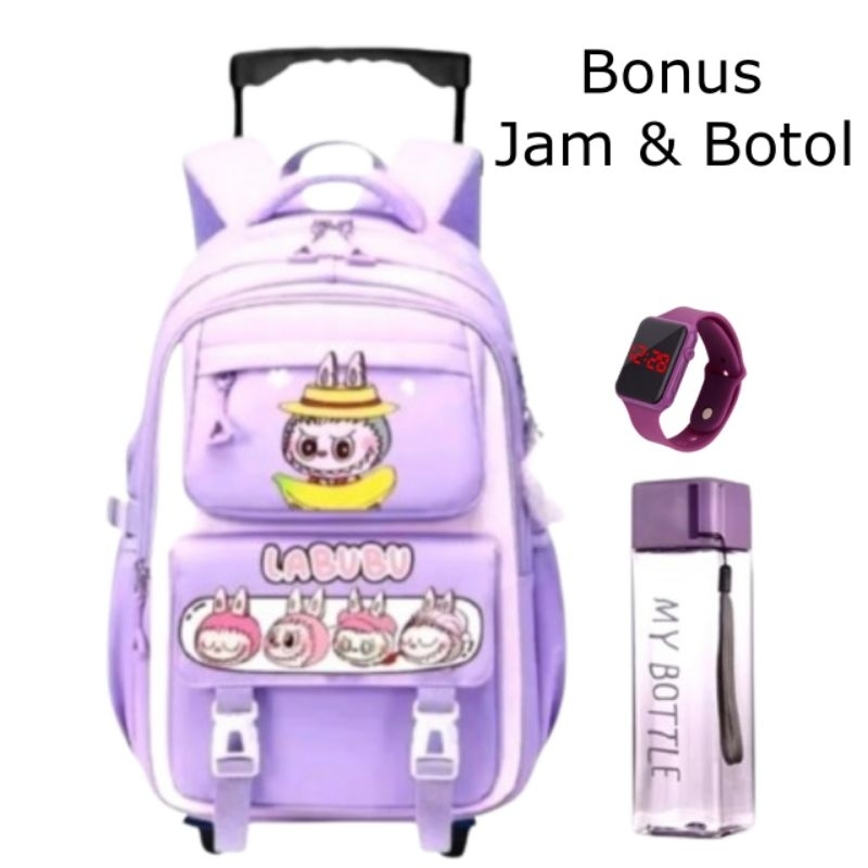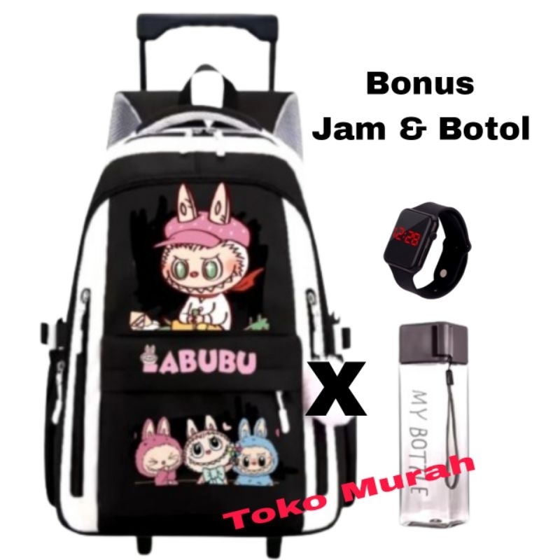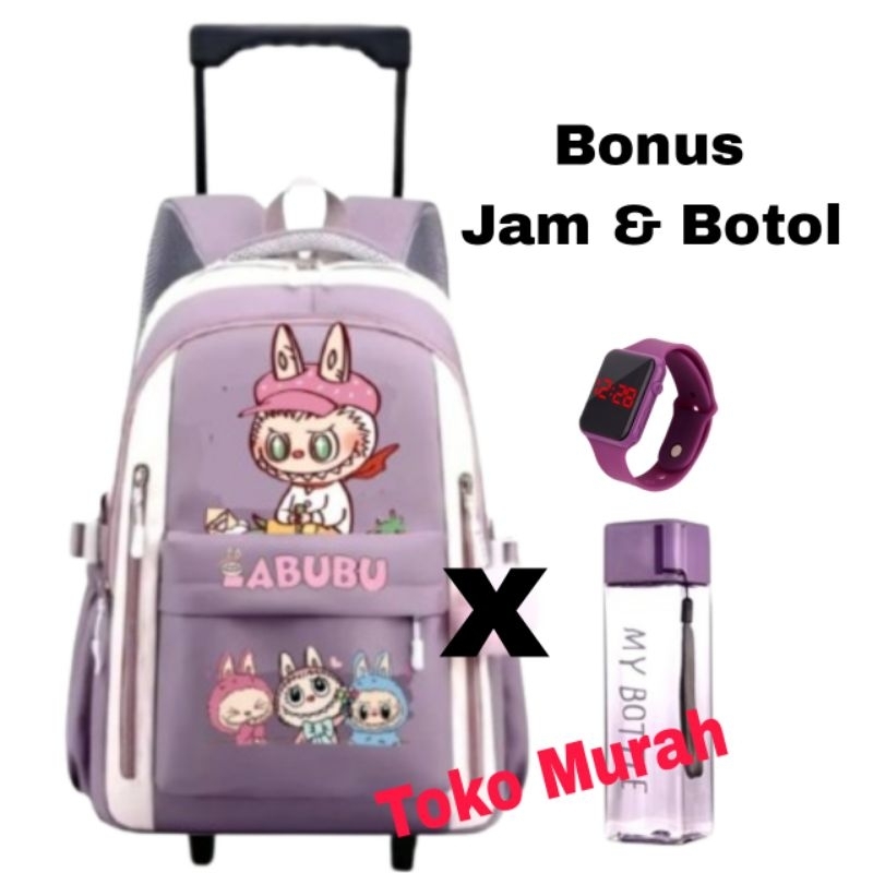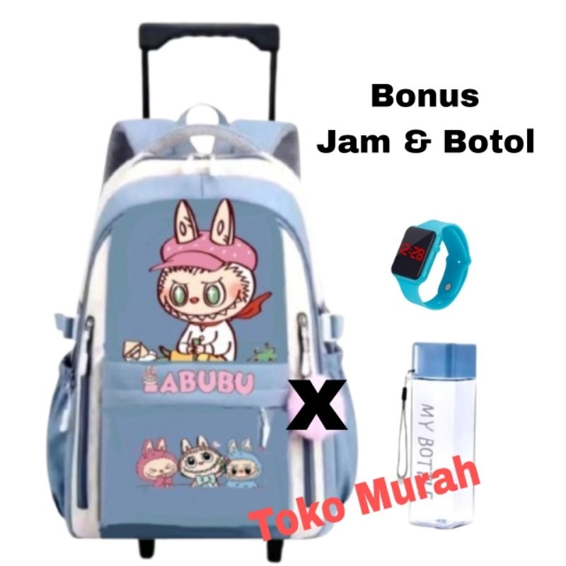 TAS DORONG RANSEL RODA TROLI ANAK PEREMPUAN MODEL LABUBU VIRAL MOTIF BONEKA