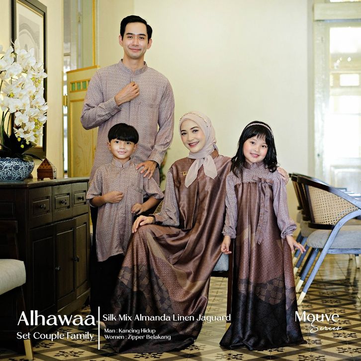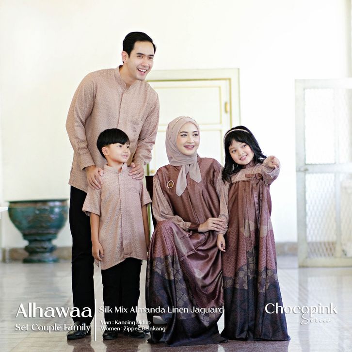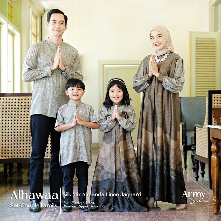 Alhawa Family Set Sarimbit Lebaran KelAlhuarga Couple Gamis Muslim One Set Koko Kemeja Pria Cowok Kurta Dress Pasangan