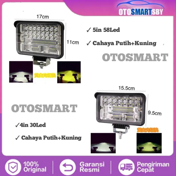 Lampu tembak Sorot Mobil 2 Cahaya Putih & Kuning CREE LED Worklight 30 Mata & 58 Mata 12V Dan 24 Volt Lampu Sorot Mobil