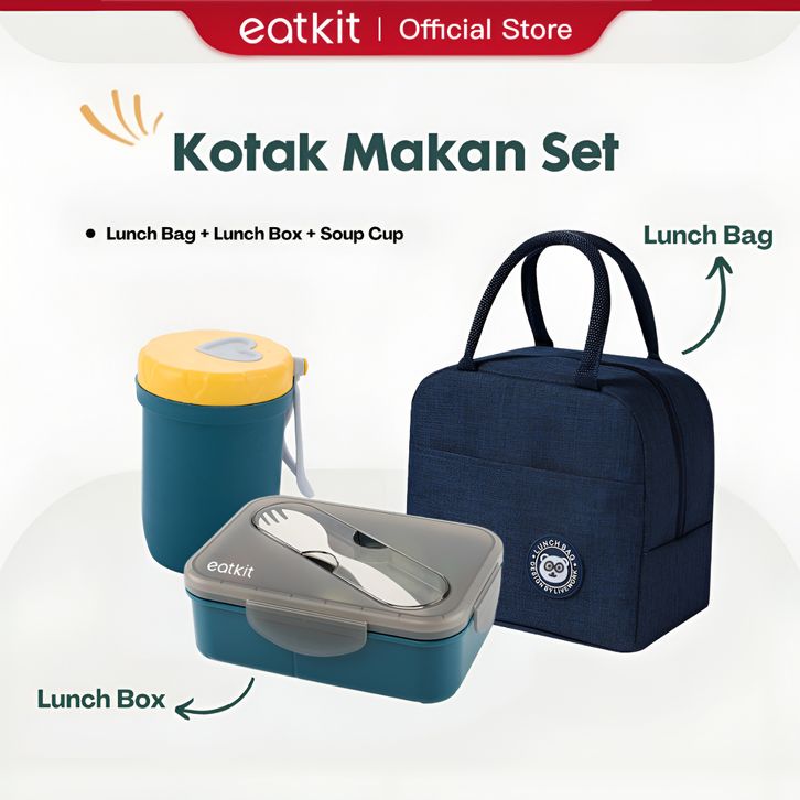 Kotak Makan Set Eatkit 3in1 900ml&1200ml | Bekal Makan Set Lunch Box Set | Tempat Bekal With Tas Bekal&Cangkir Soup