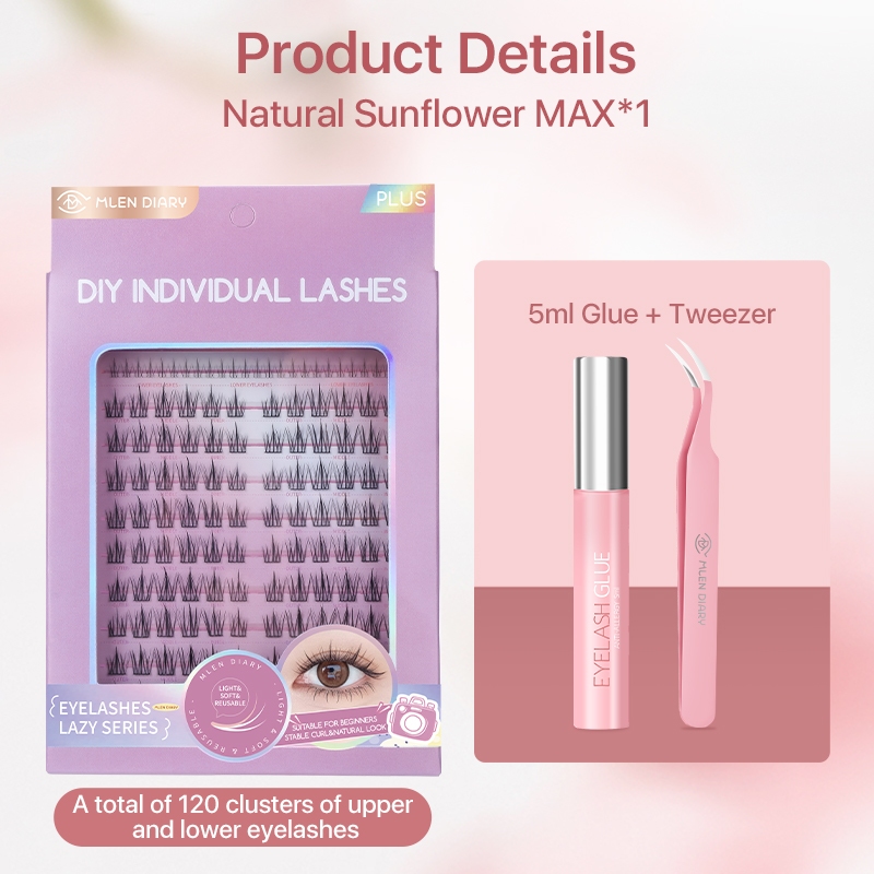 MLEN DIARY-BULU MATA BUNGA MATAHARI PANJANG 9-12MM BULU MATA PALSU LEM EYELASH EXTENSION DAN PINSET EYELASH