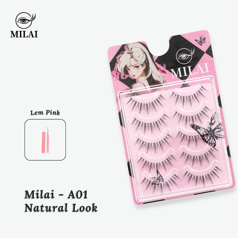 Pinset Pink + Lem, Hanya Bulumata, Pinset Lem Putih