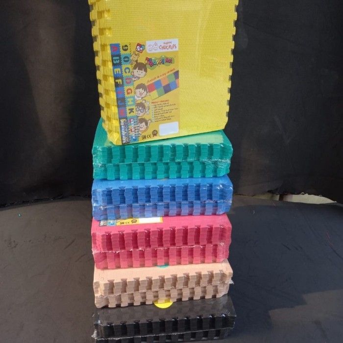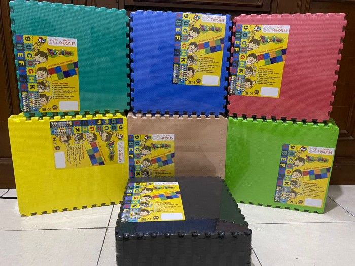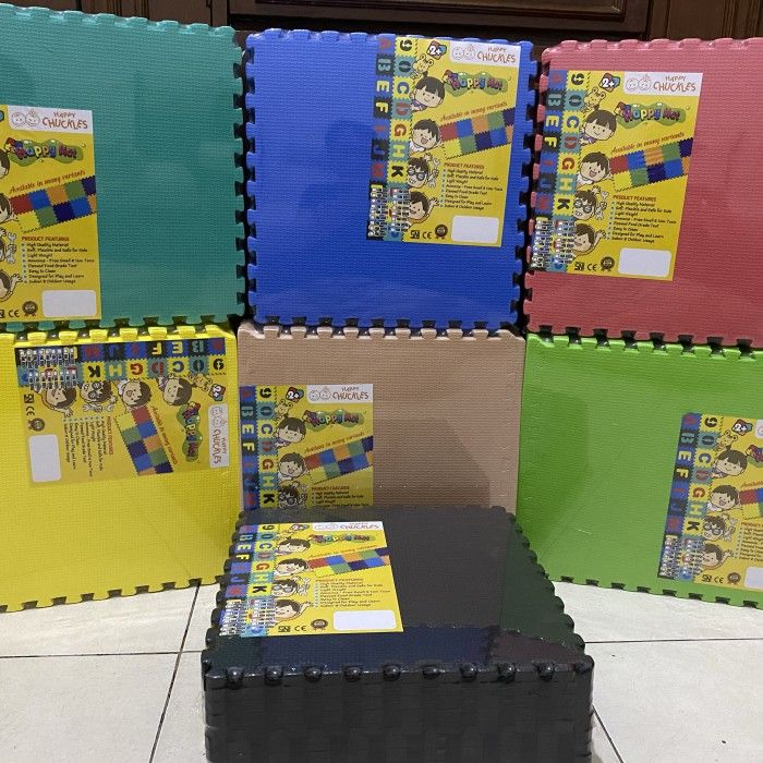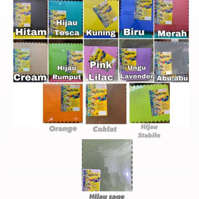Puzzle Mat Matras Alas Bermain Anak 30x30 tebal 1 cm Eva ber-LIST - hijau sage - Hitam