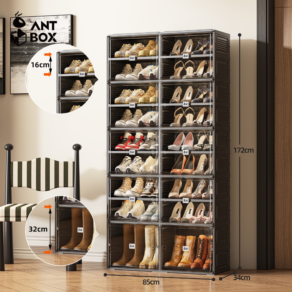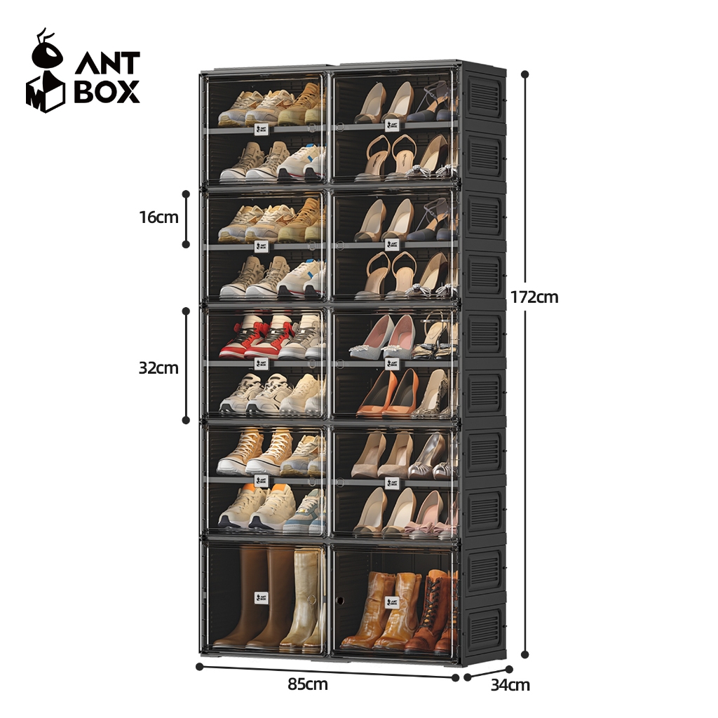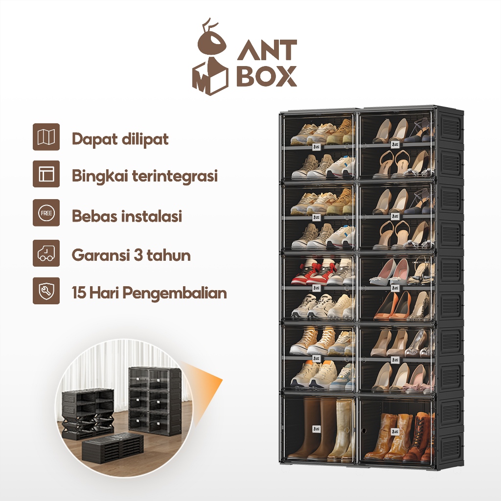 ANTBOX LEMARI RAK KABINET HITAM 36 PASANG LEMARI SUSUN LIPAT RAK MULTIFUNGSI TAS SEPATU HELM BOOTS