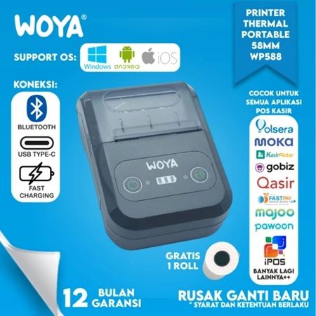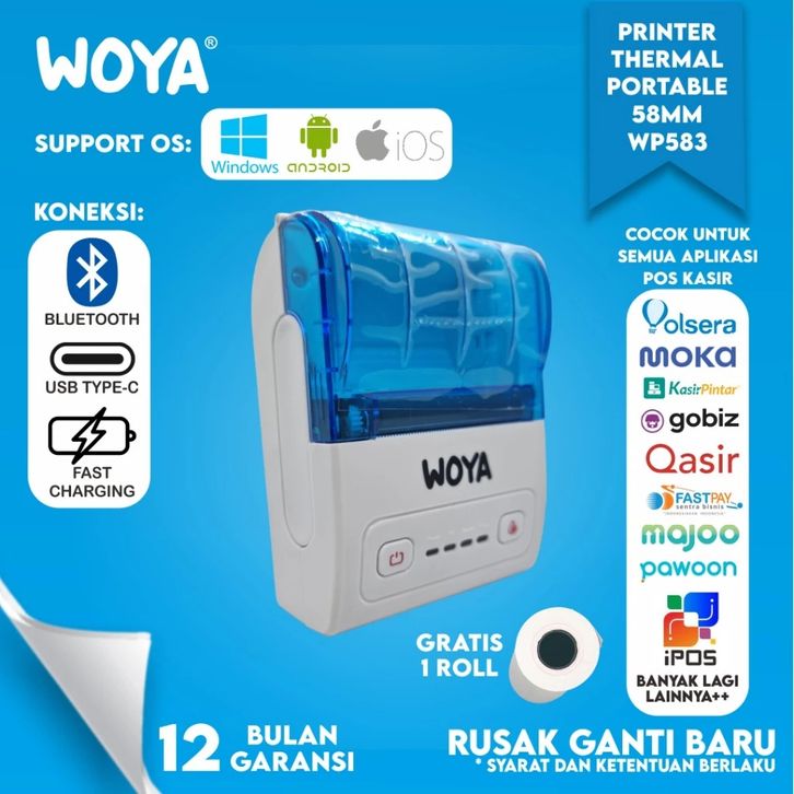 WOYA PRINTER BLUETOOTH MINI MOBILE THERMAL PORTABLE RECEIPT PPOB / printer bluetooth / printer epson
