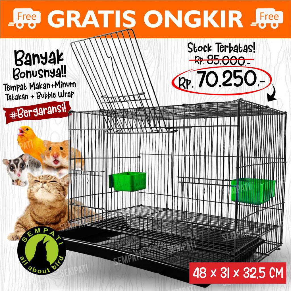 SANGKAR KANDANG UMBARAN KUCING 48X31 CM SIZE M MEDIUM ECO FREE 2 CEPUK PLASTIK PLUS TATAKAN