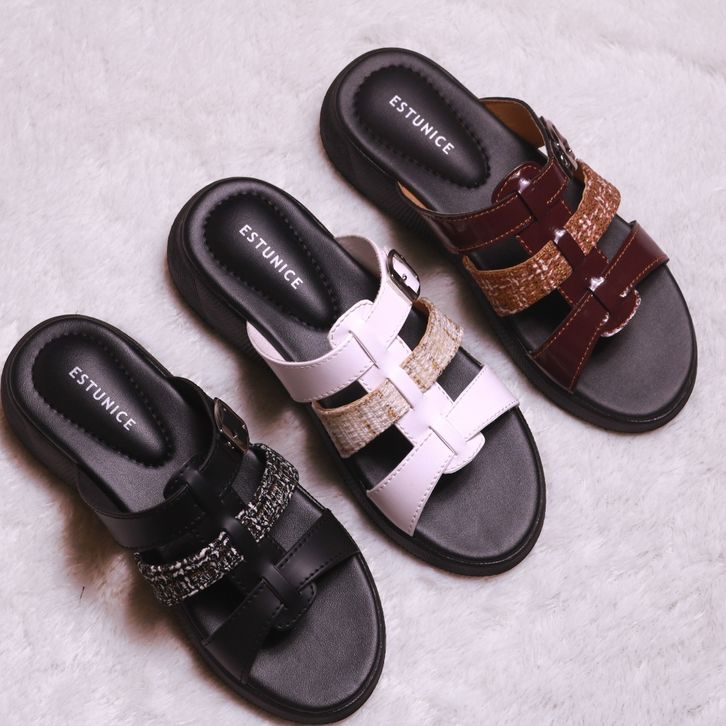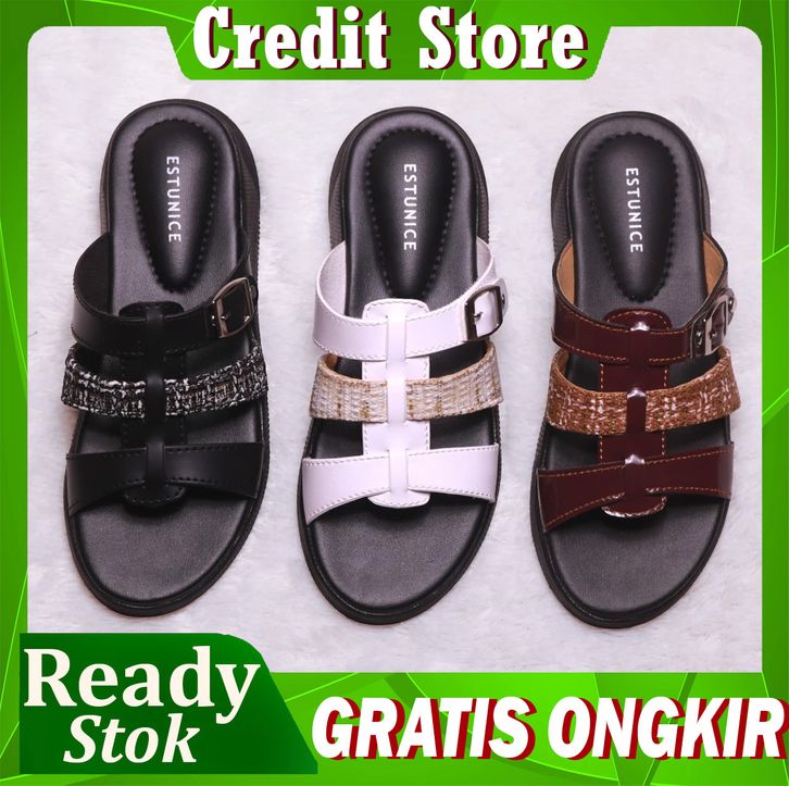 CREDIT STORE Sandal Slop Wanita Platform Sendal Rajut Wedges Hak Tinggi 3 Cm Ukuran 37 Sampai 40 - Clarissa