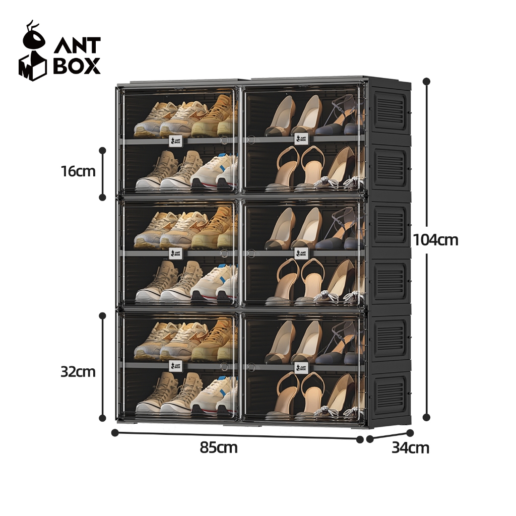 ANTBOX LEMARI KABINET SEPATU KAPASITAS 24 PASANG WARNA HITAM RAK SEPATU SUSUN TERTUTUP MINIMALIS
