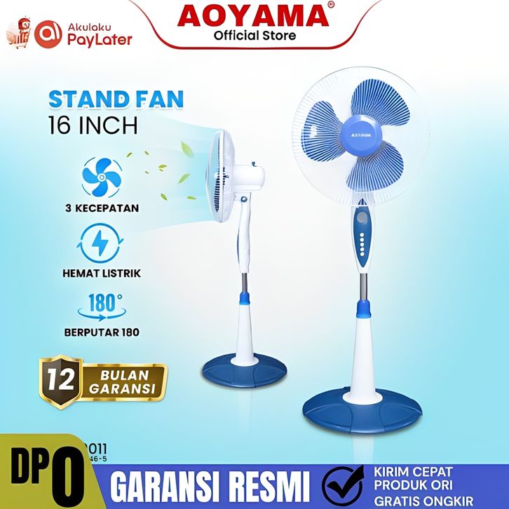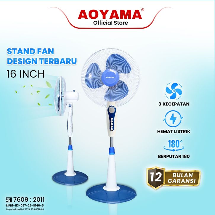 AOYAMA Kipas Angin Berdiri 16 Inch Stand Fan 3 Speed Angin Kuat Warna Putih Biru Original