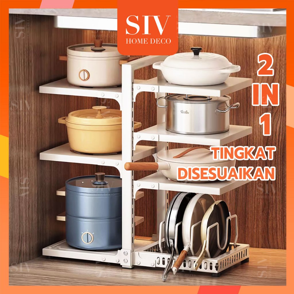 (FLASH SALE) SIV Rak Panci Wastafel Dapur Di Bawah Rak Rak Pot Rak Panci Susun Rak Bawah Wastafel Rak Dapur Stainless