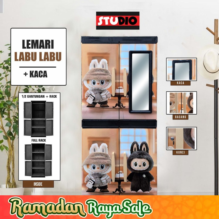 LEMARI PLASTIK KARAKTER ANAK AKAKO 2 PINTU JUMBO MOTIF VIP LABUBU KACA PEREMPUAN LAKI LAKI BARU