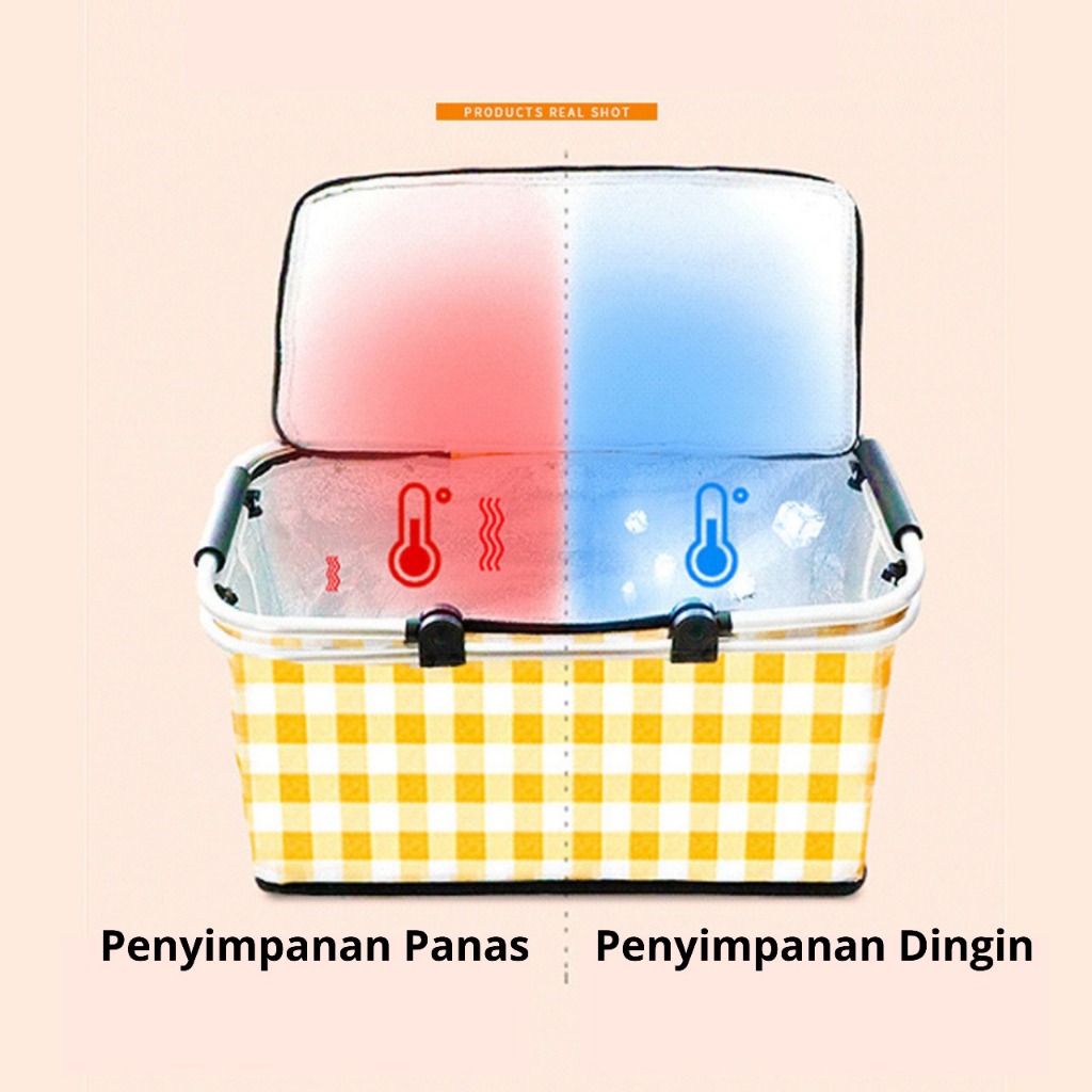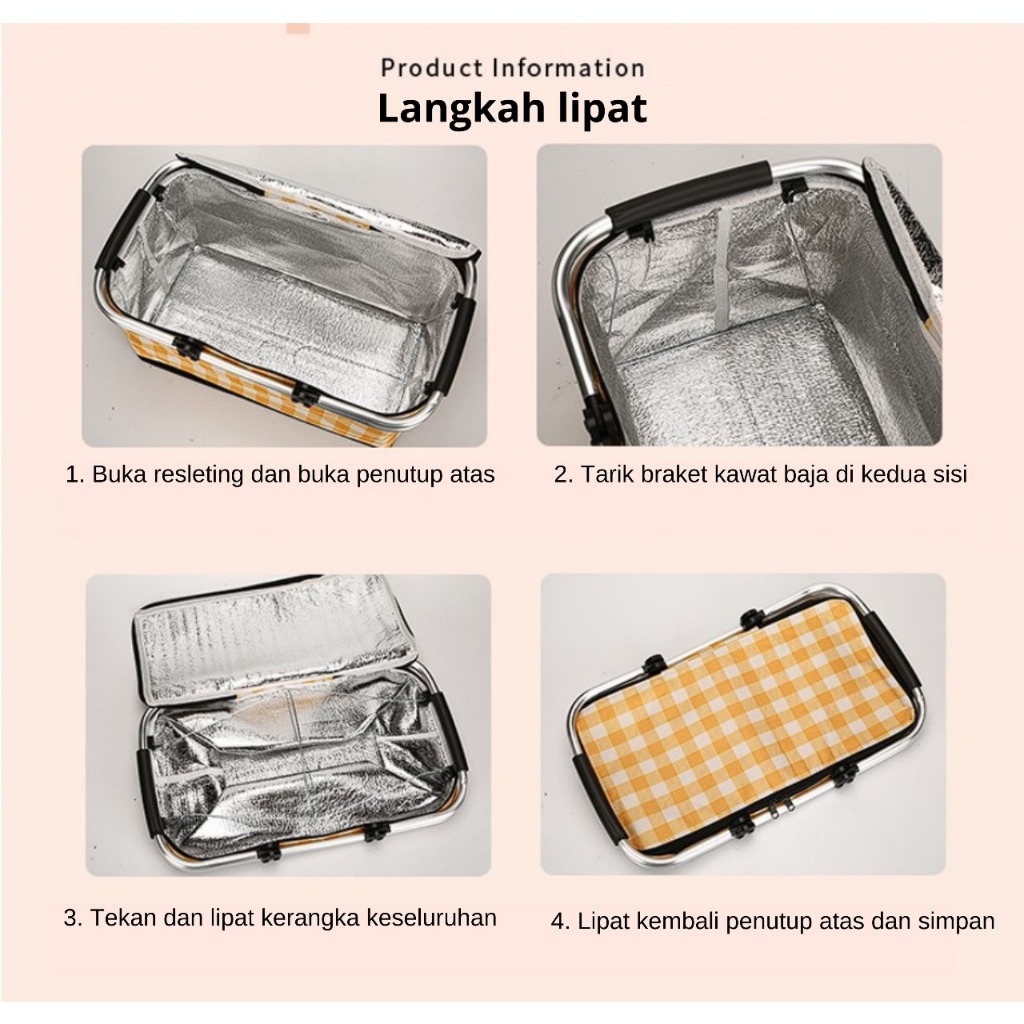 [Limited Stock] Tas Piknik Keranjang Piknik Lipat Lapisan Dalam aluminium Foil Tulang aluminium