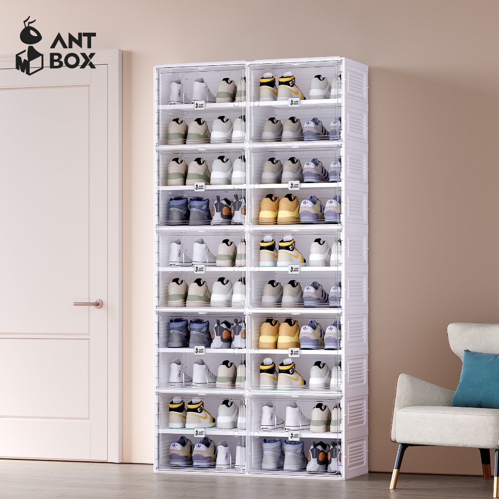 ANTBOX KABINET SEPATU RANGKA PUTIH TRANSPARAN KAPASITAS 40 PASANG RAK SUSUN MINIMALIS ANTI DEBU