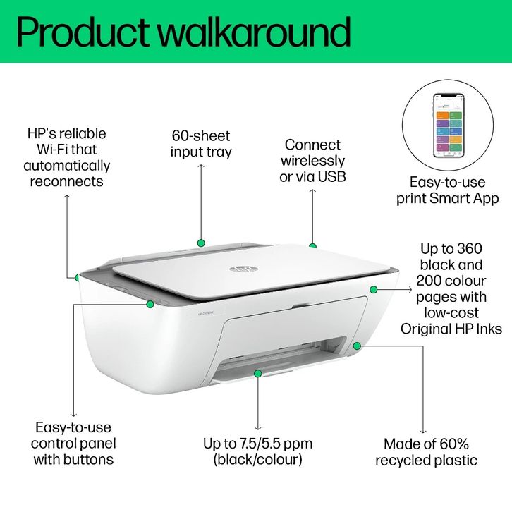 Printer HP DeskJet 2876 All in One ( Print Scan Copy ) Mobile Fax / printer bluetooth printer epson