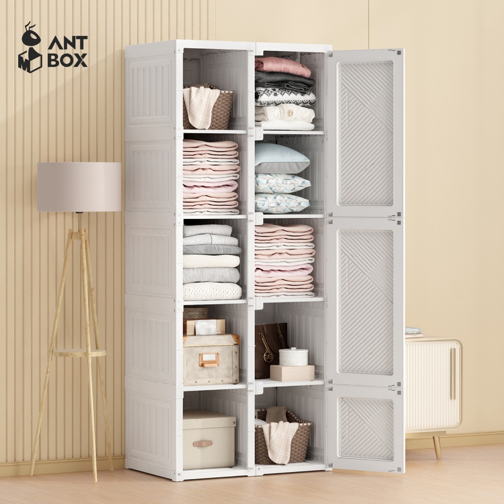 ANTBOX LEMARI BAJU PUTIH 10 BOX 590L LEMARI BAJU MINIMALIS KABINET LIPAT LEMARI MULTIFUNGSI