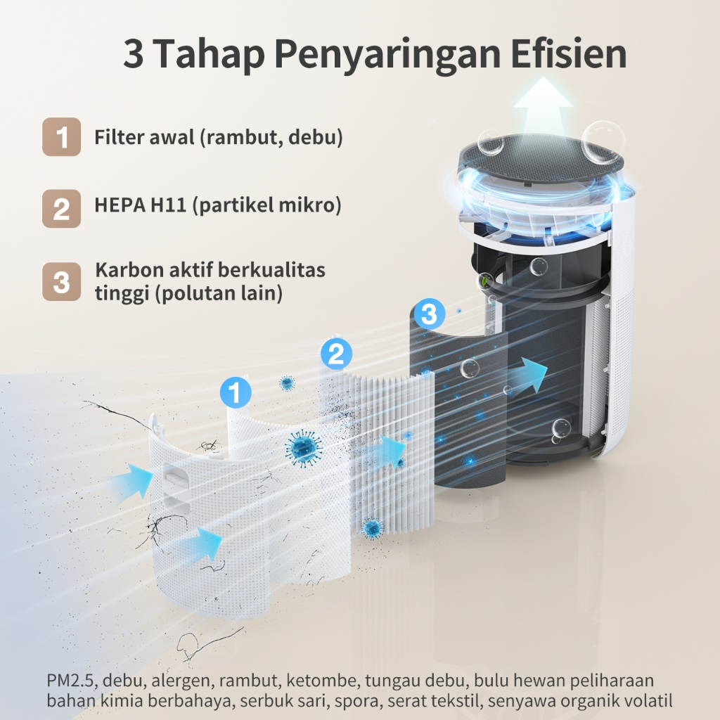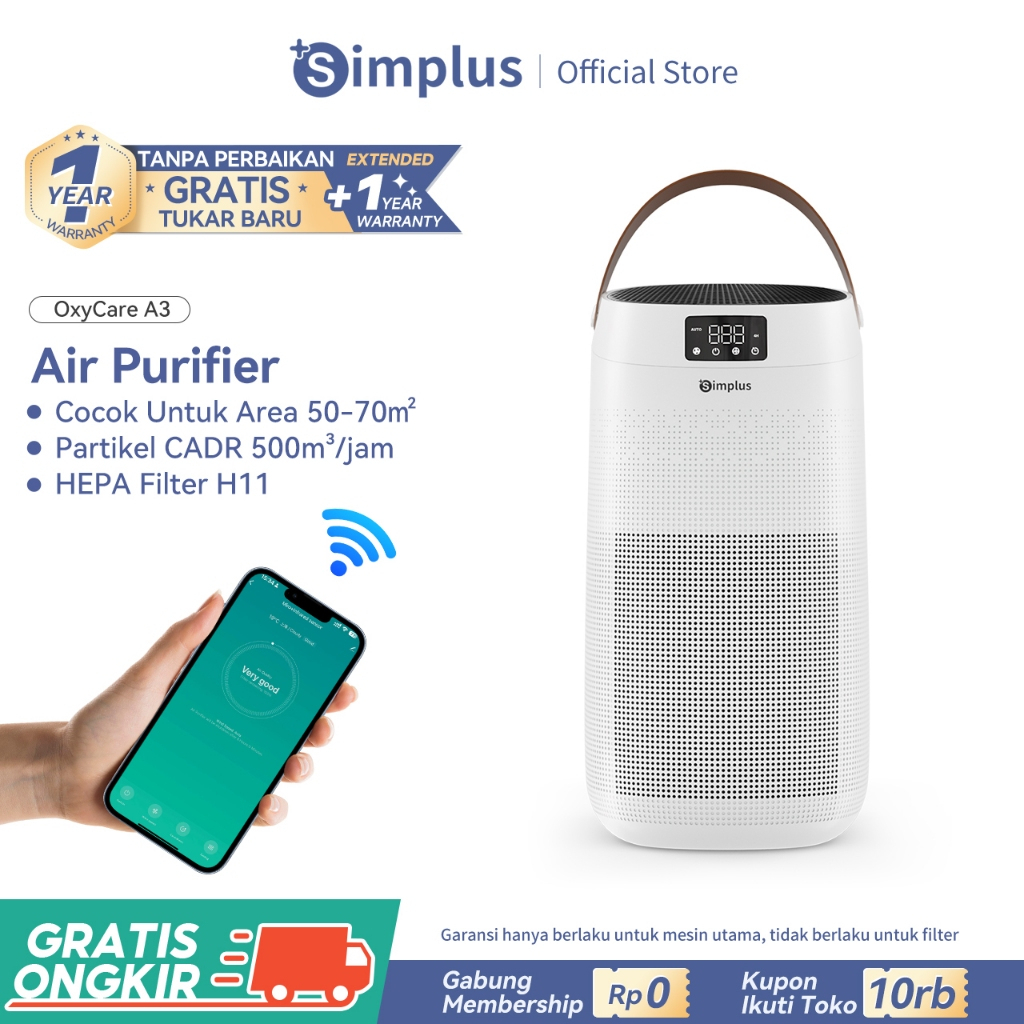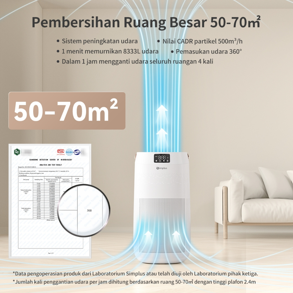 Simplus Air Purifier 3 Lapisan Filter Pemurnian Seluas 50㎡ HEPA Filter Pemurnian 99.9%