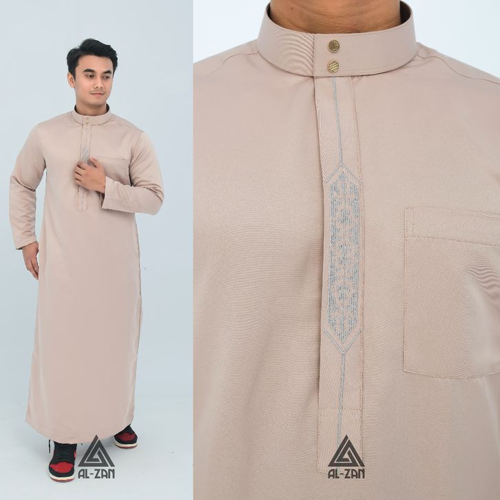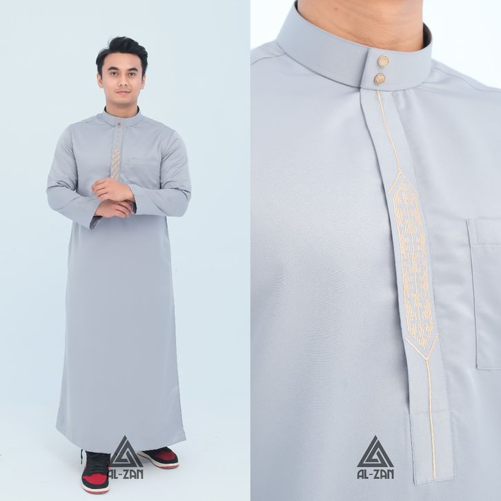 Jubah pria muslim gamis pria muslim lengan panjang bordir jubbah dewasa katun toyobo hitam putih busana muslim pria mode