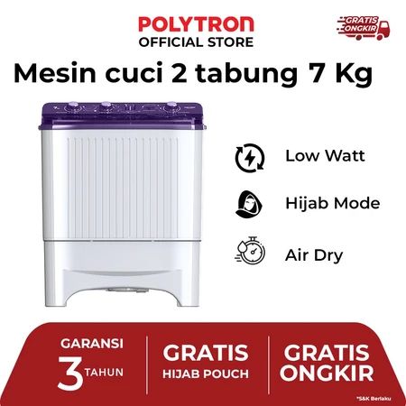 MESIN CUCI 2 TABUNG POLYTRON 7 KG 7KG 7076Y 7076G 7072N 7072B GIANT SERIES HIJAB PRIMADONA CUCI KERING TERMURAH TERLARIS