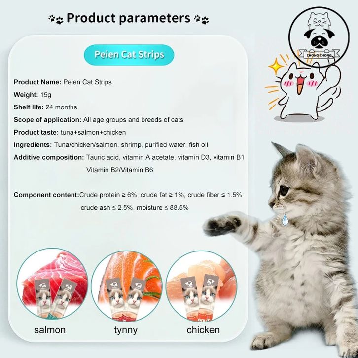 Makanan kucing basah 50PCS Snack Hewan Peliharaan Cat Strip 15g/bar tongkat kucing makanan ringan kucing makanan