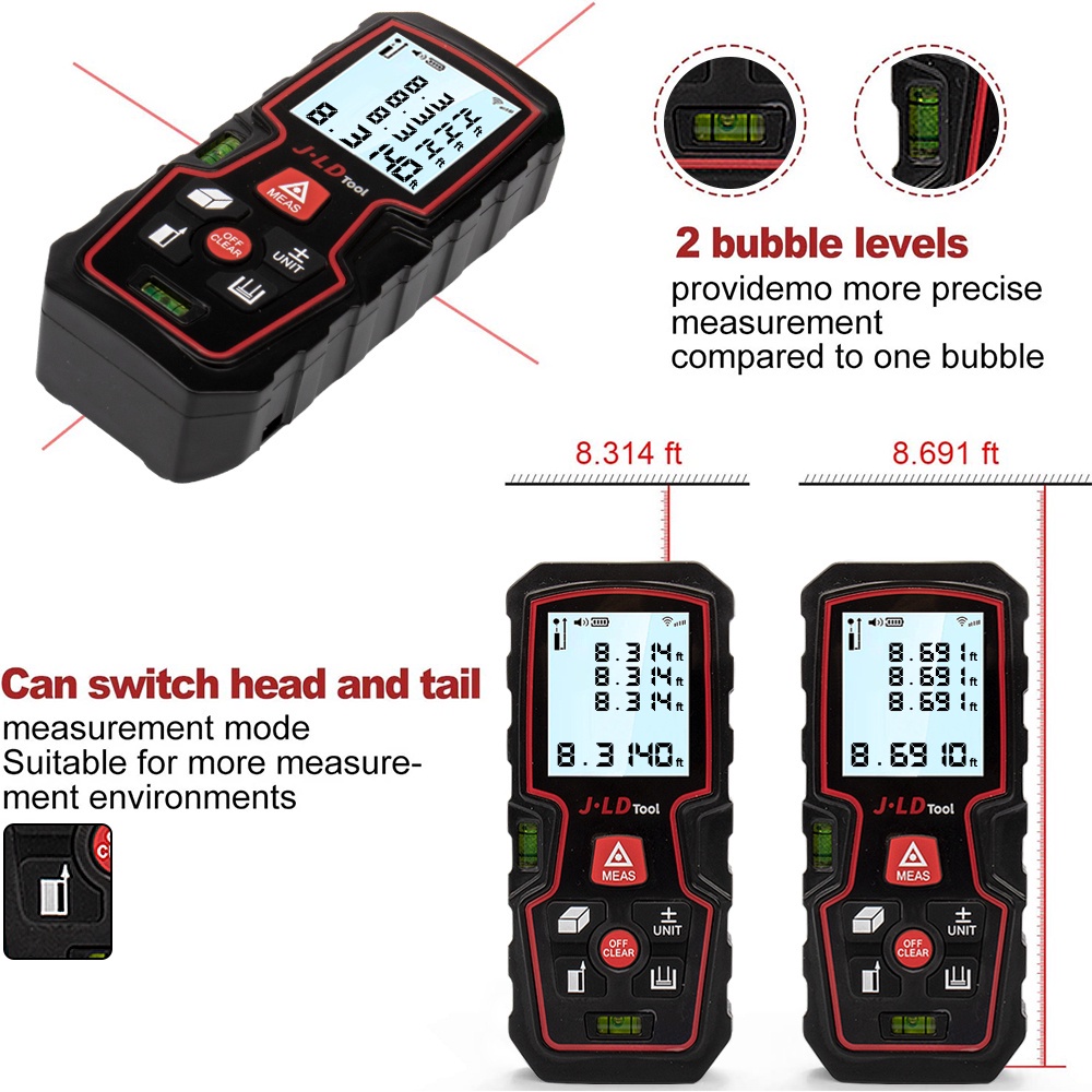 (FLASH SALE) JLD METERAN LASER DISTANCE DIGITAL LCD 50M-80M-100M DISTANCE LASER Alat ukur Distance Meter Measure