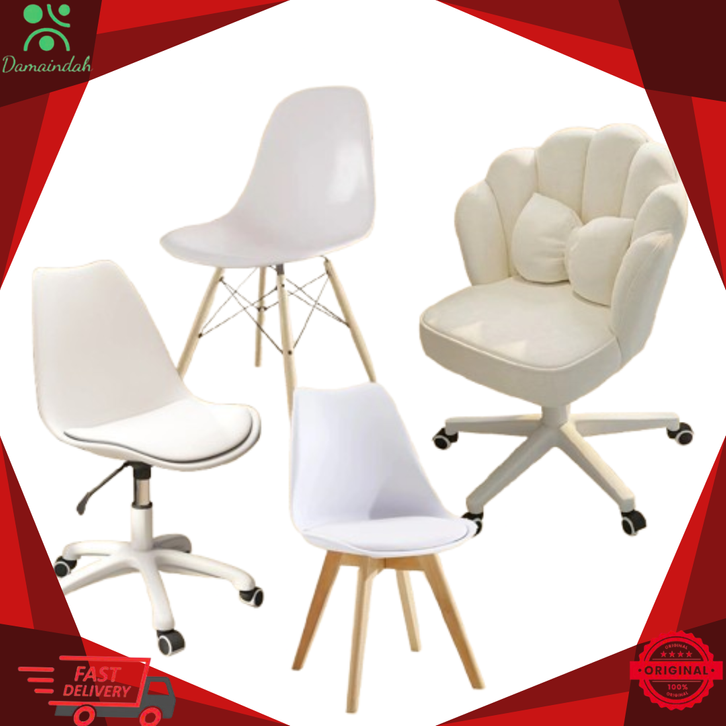 Kursi Putar-Putih , Kursi Putar-Hitam, Kursi Putar-Coklat , Kursi Putar-⚪ , Rias Putar-Puti, Rias Putar-Merah, Kursi Eames-Putih, Kursi Eames-Hitam , Kursi Bantal-Putih, Kursi Bantal-Hitam , Kursi Putar Sofa-⚪