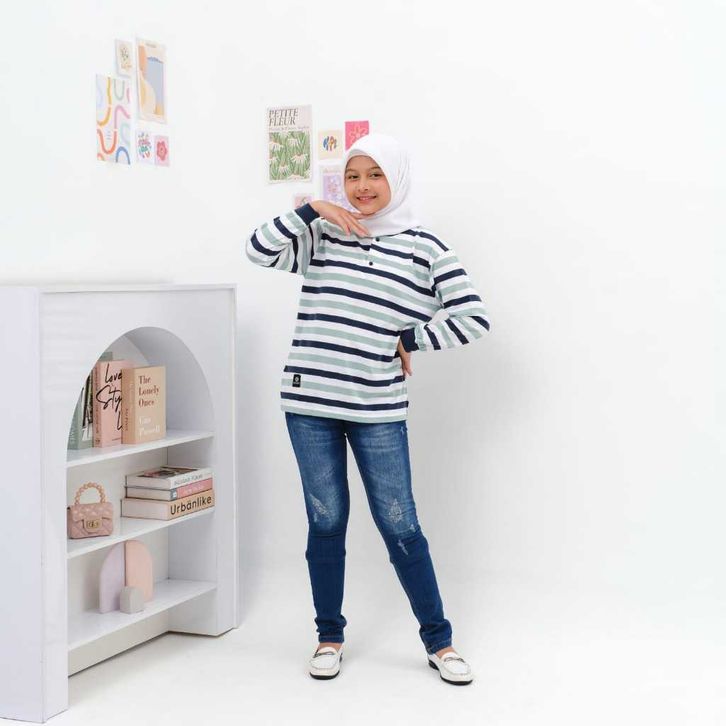 Applekidz Kaos Salur Stripe Anak Tangan Panjang Unisex Umur 2-14 Tahun Runa