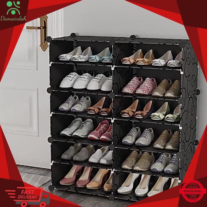 Rak Sepatu Susun Tertutup Kotak Sepatu Lipat Anti Debu Lemari Rak Sepatu Kotak Estetik