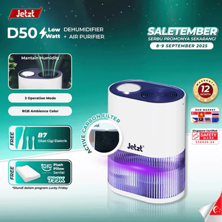 Jetzt D50 Dehumidifier Air Purifier Mengurangi Kelembapan Ruangan 2L Mode Senyap Teknologi Anti Tumpah