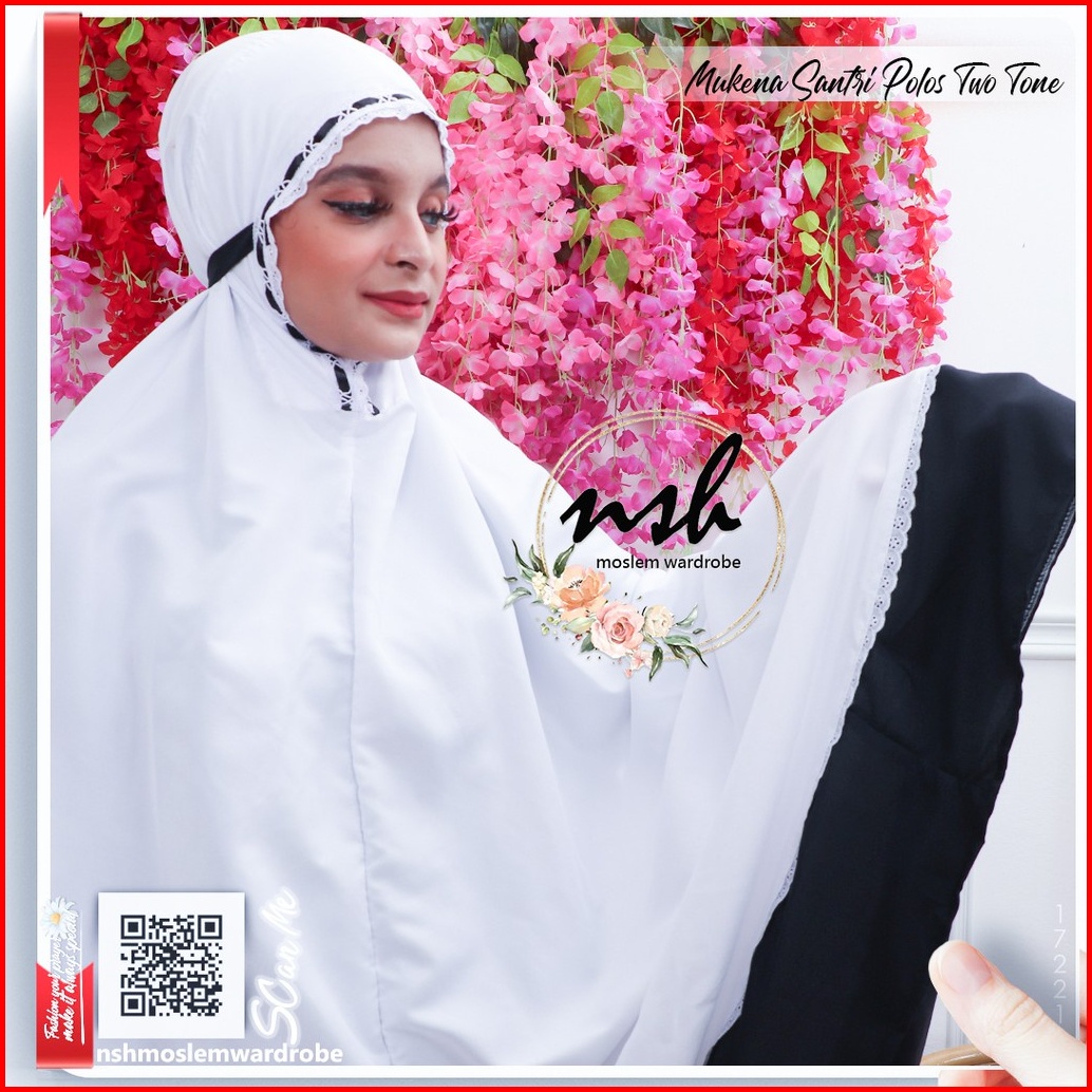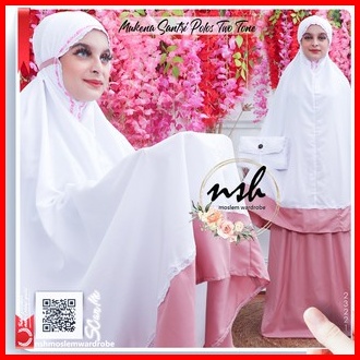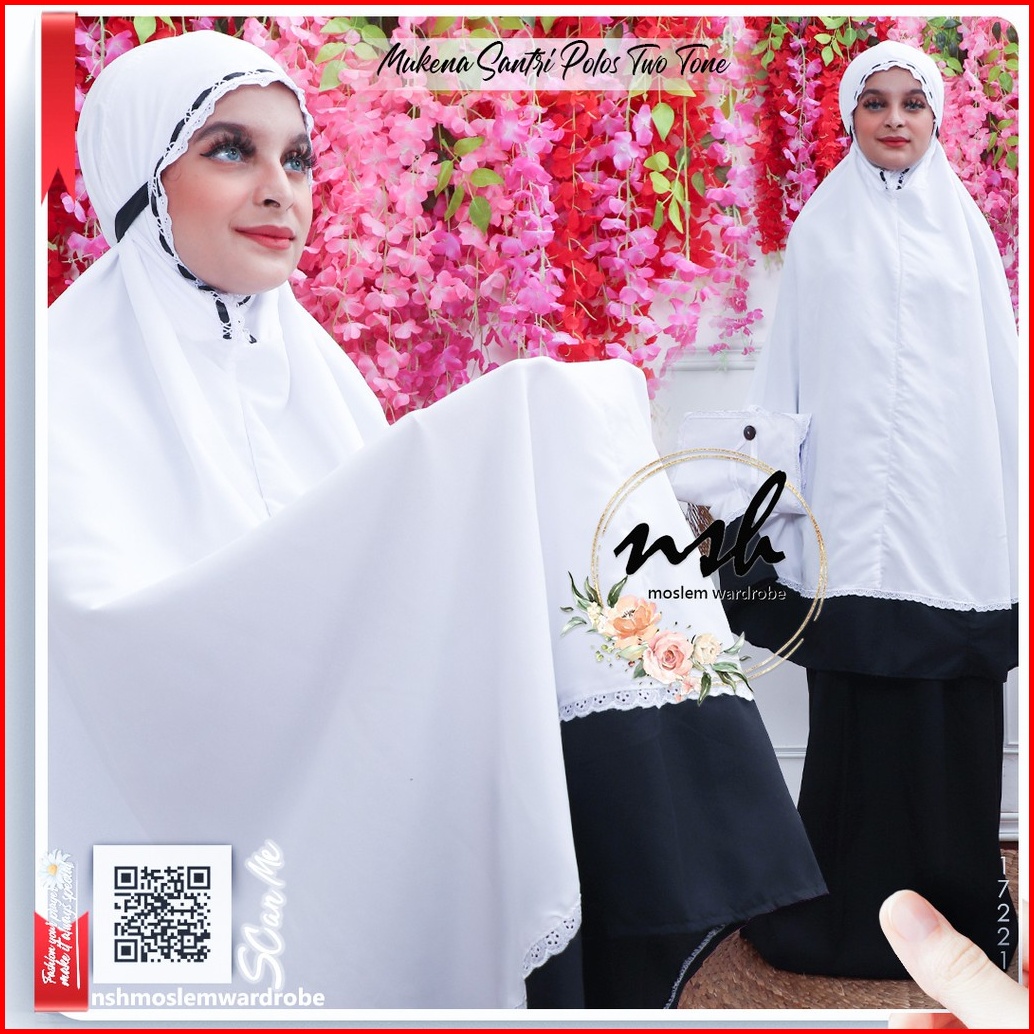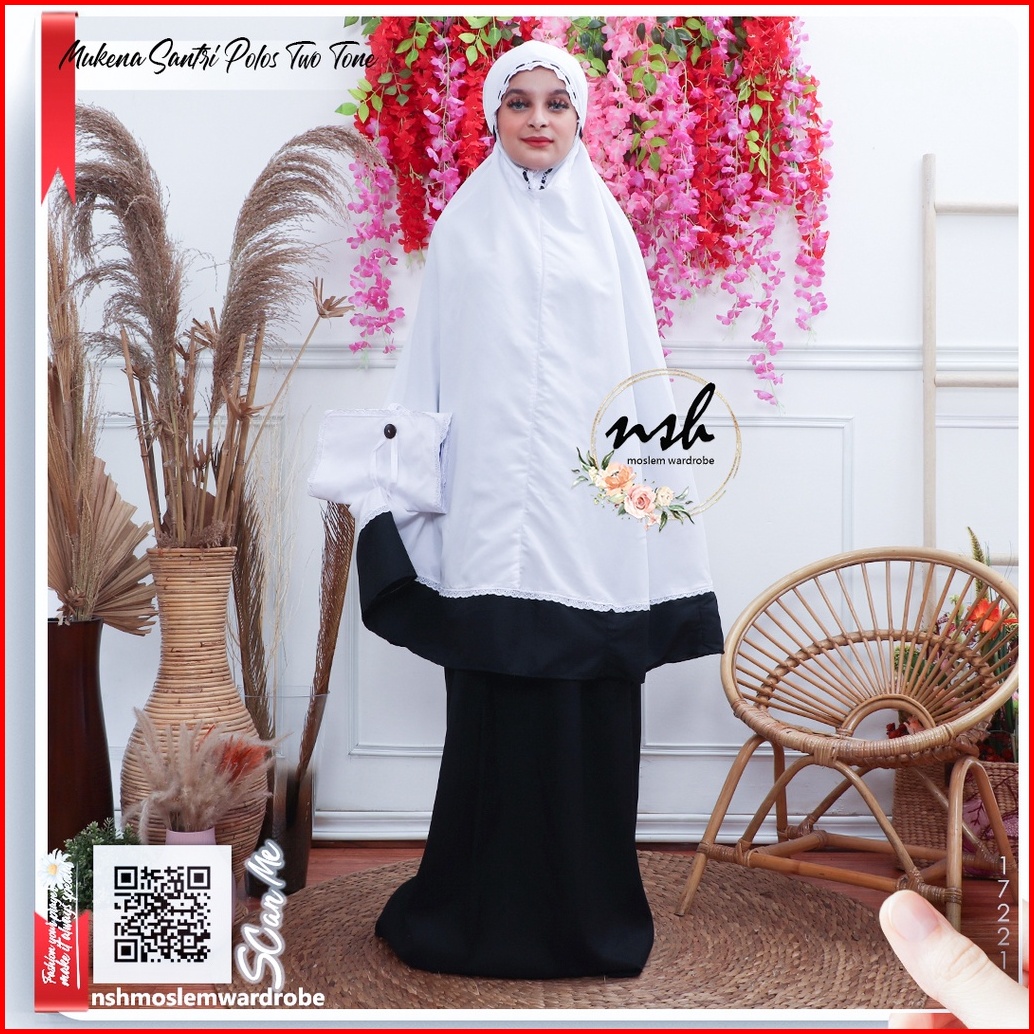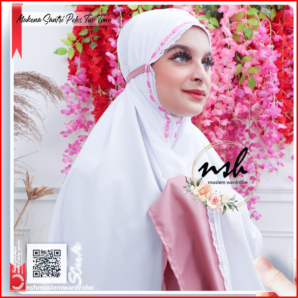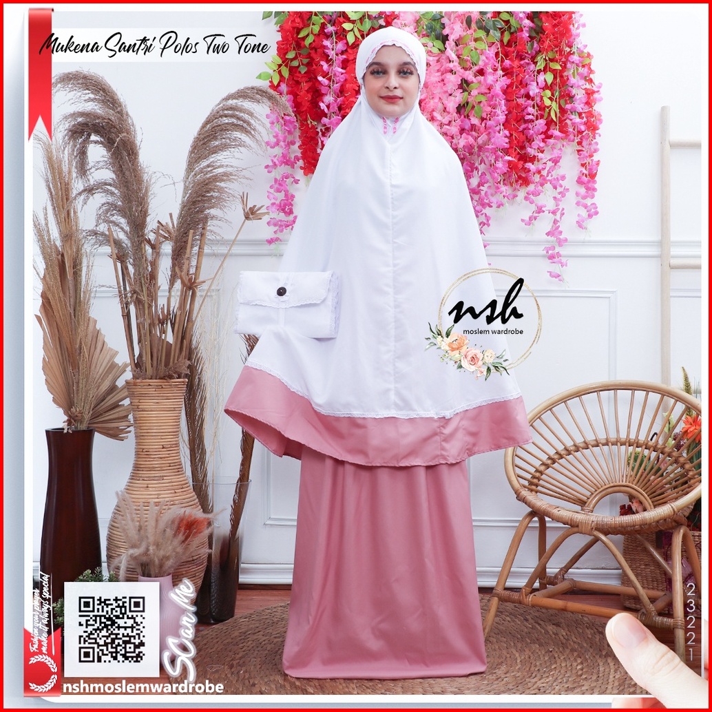 Mukena Dewasa Santri Love Polos Two Tone Dengan Tas Sajadah Mini