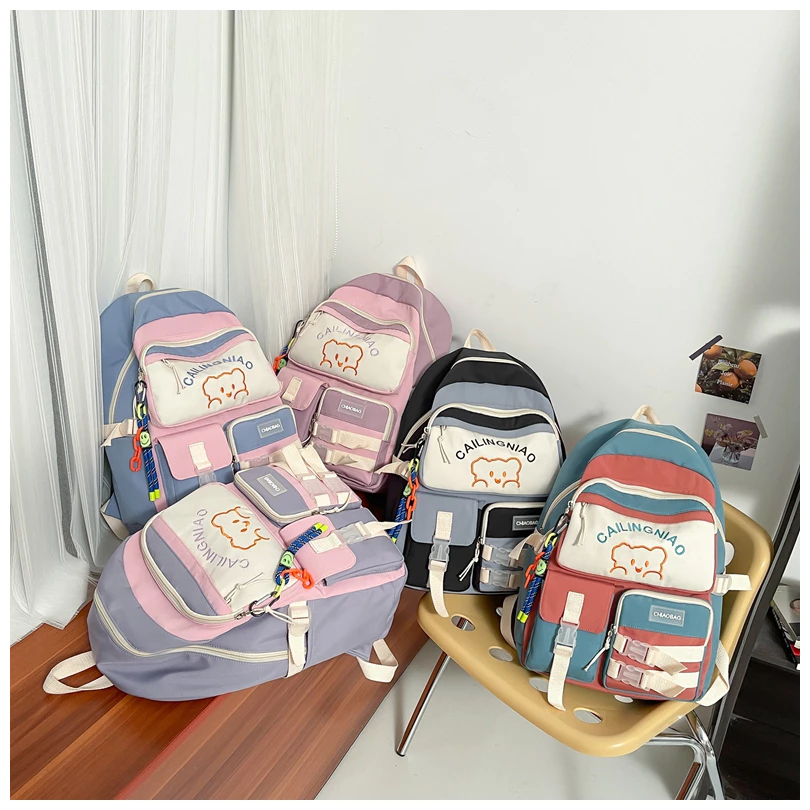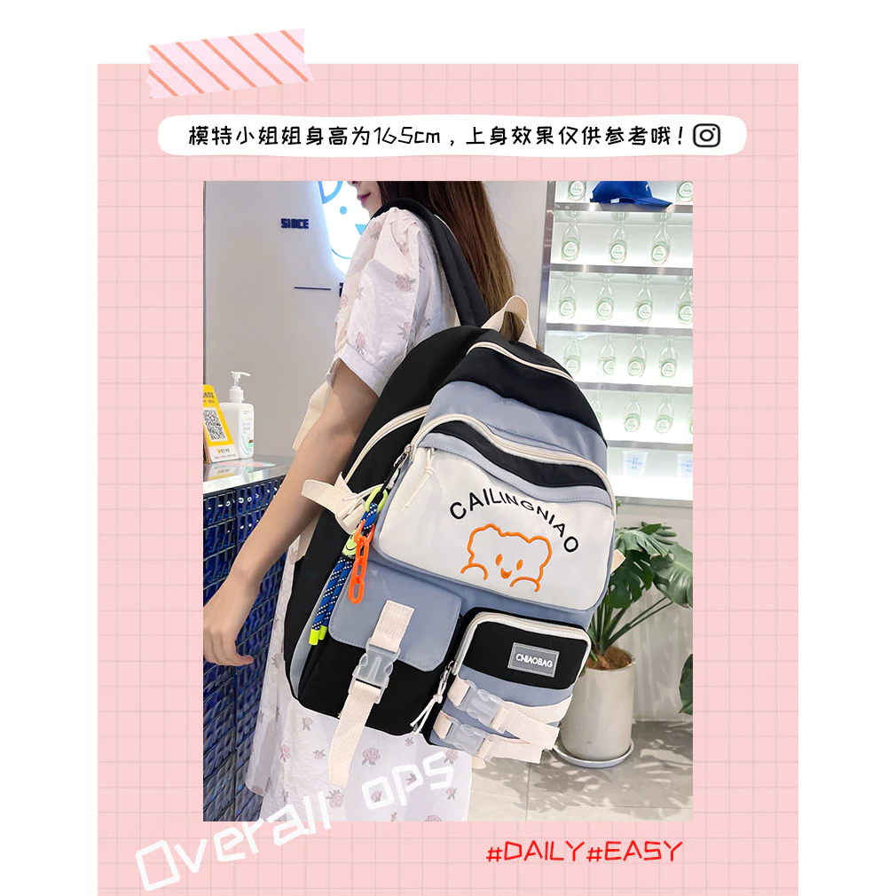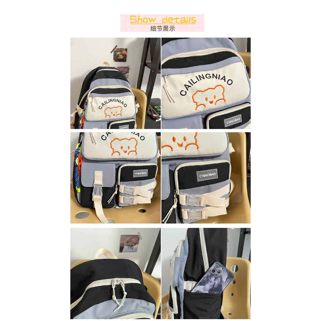 Tas Sekolah Anak Perempuan Anti Air Motif Polos Aesthetic Tas Ransel Gendong az6034 Series Premium Terbaru Terlaris