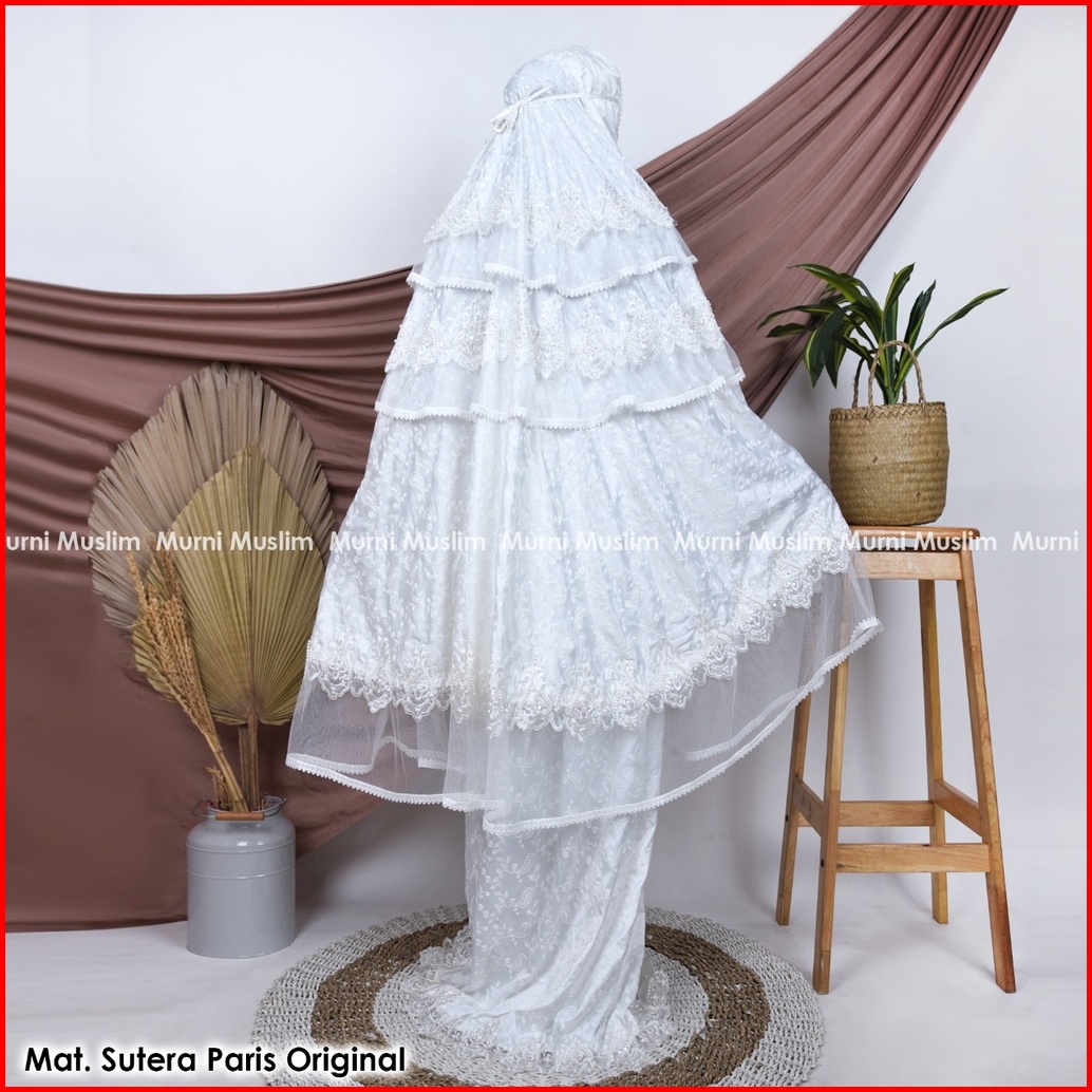 Mukena Dewasa Premium Mewah Sutra Paris Original Renda Tile Swaroski Mutiara Jumbo Terbaru