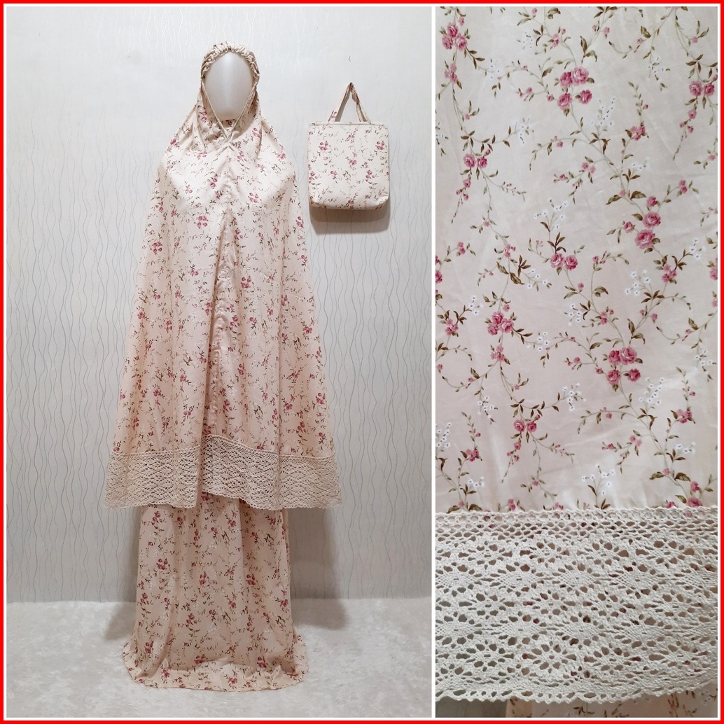 Mukena Dewasa Katun Jepang Ori Motif Cherry Series Renda Rajut