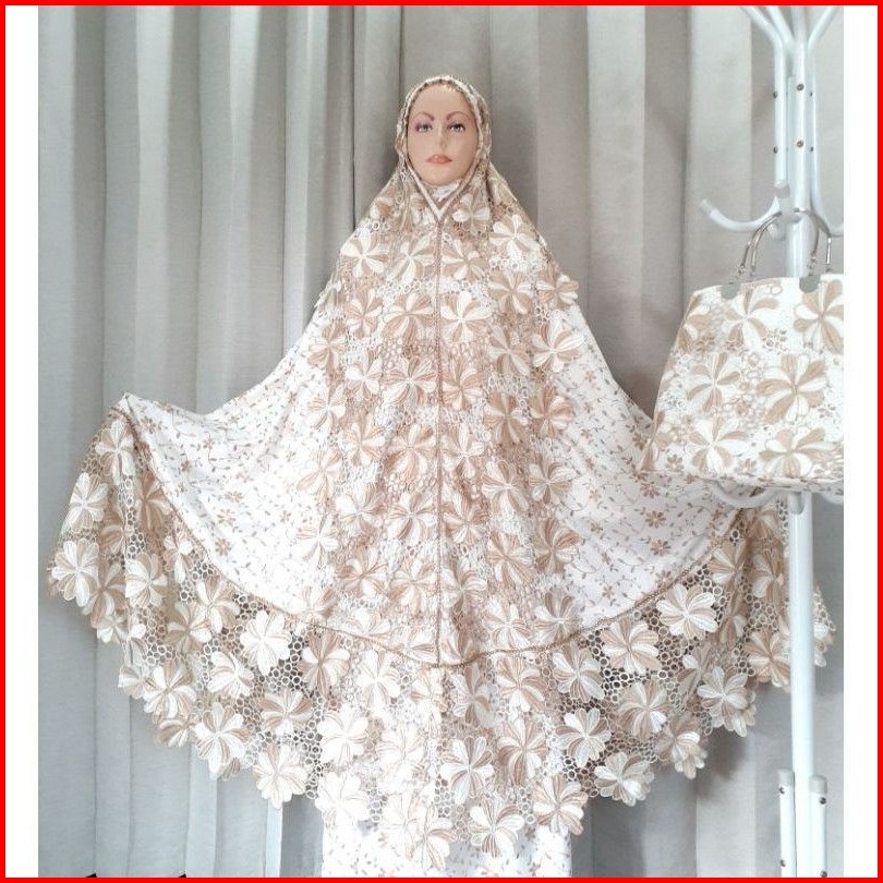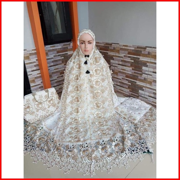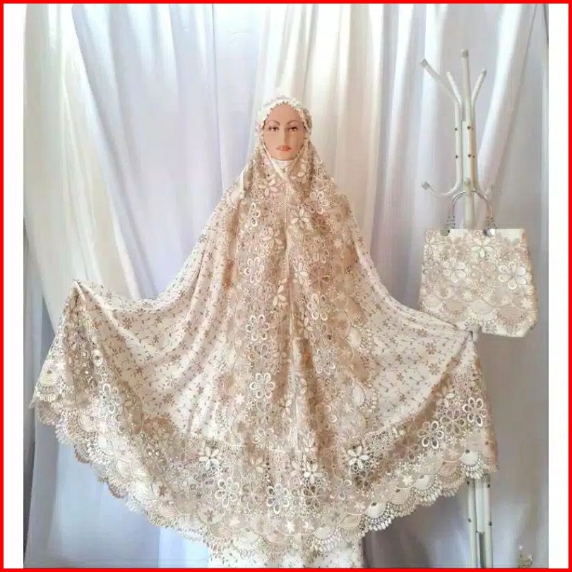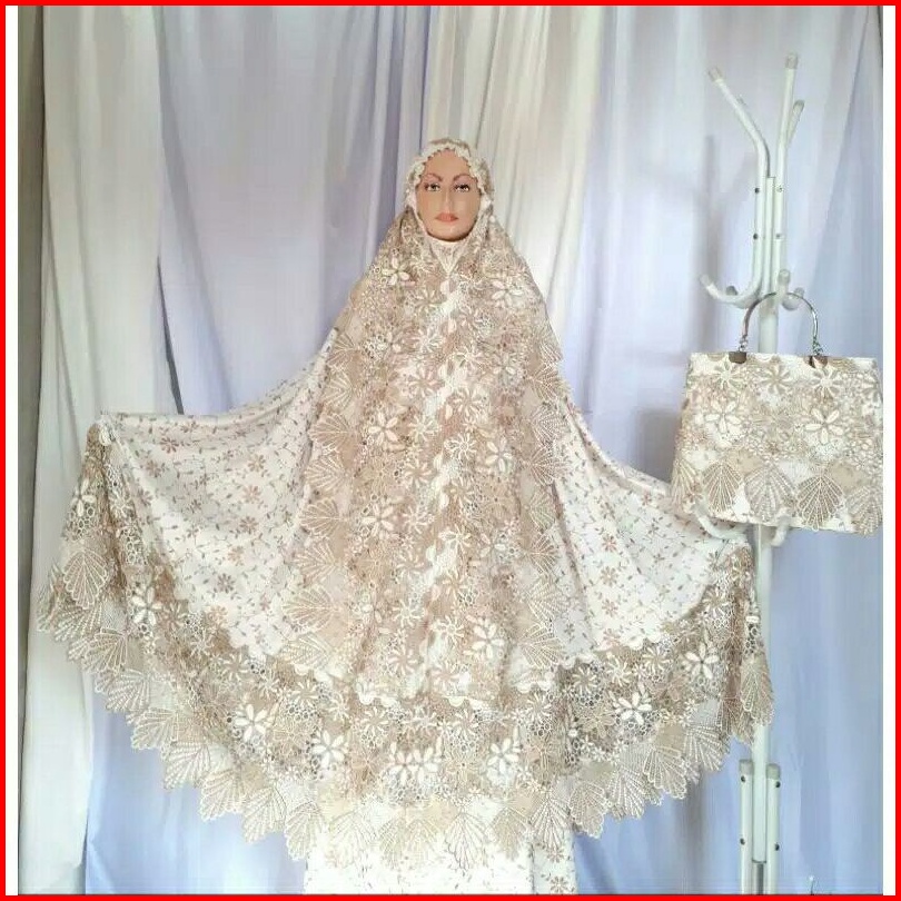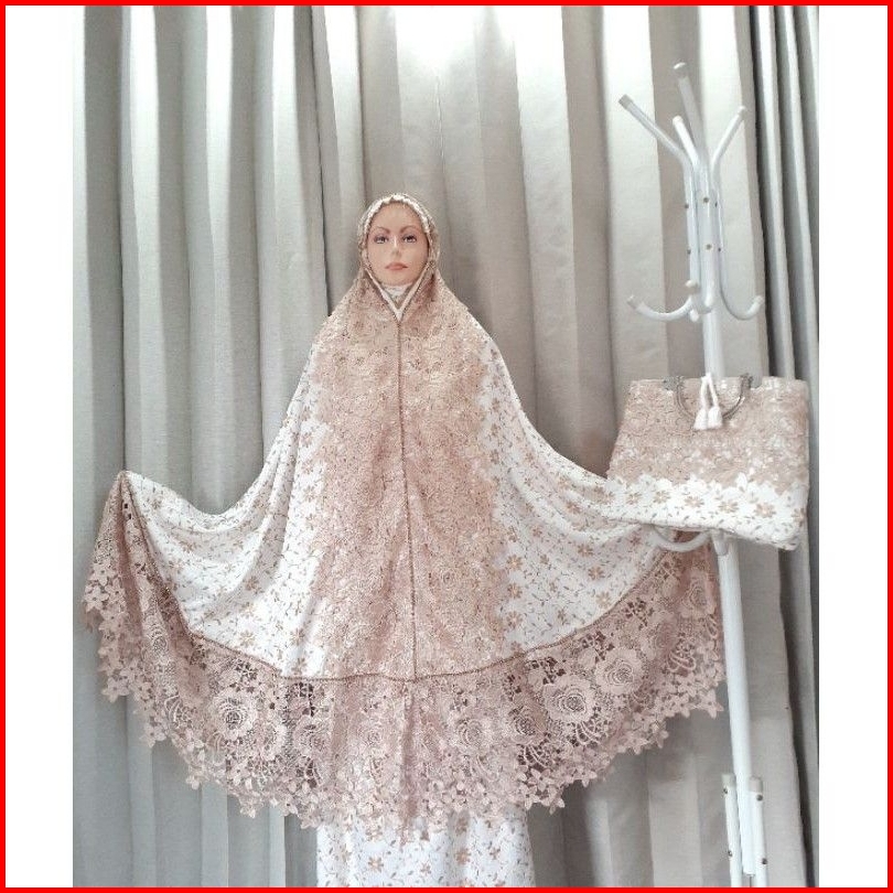 Mukena Sutra Prada Paris Mewah Renda Twotone